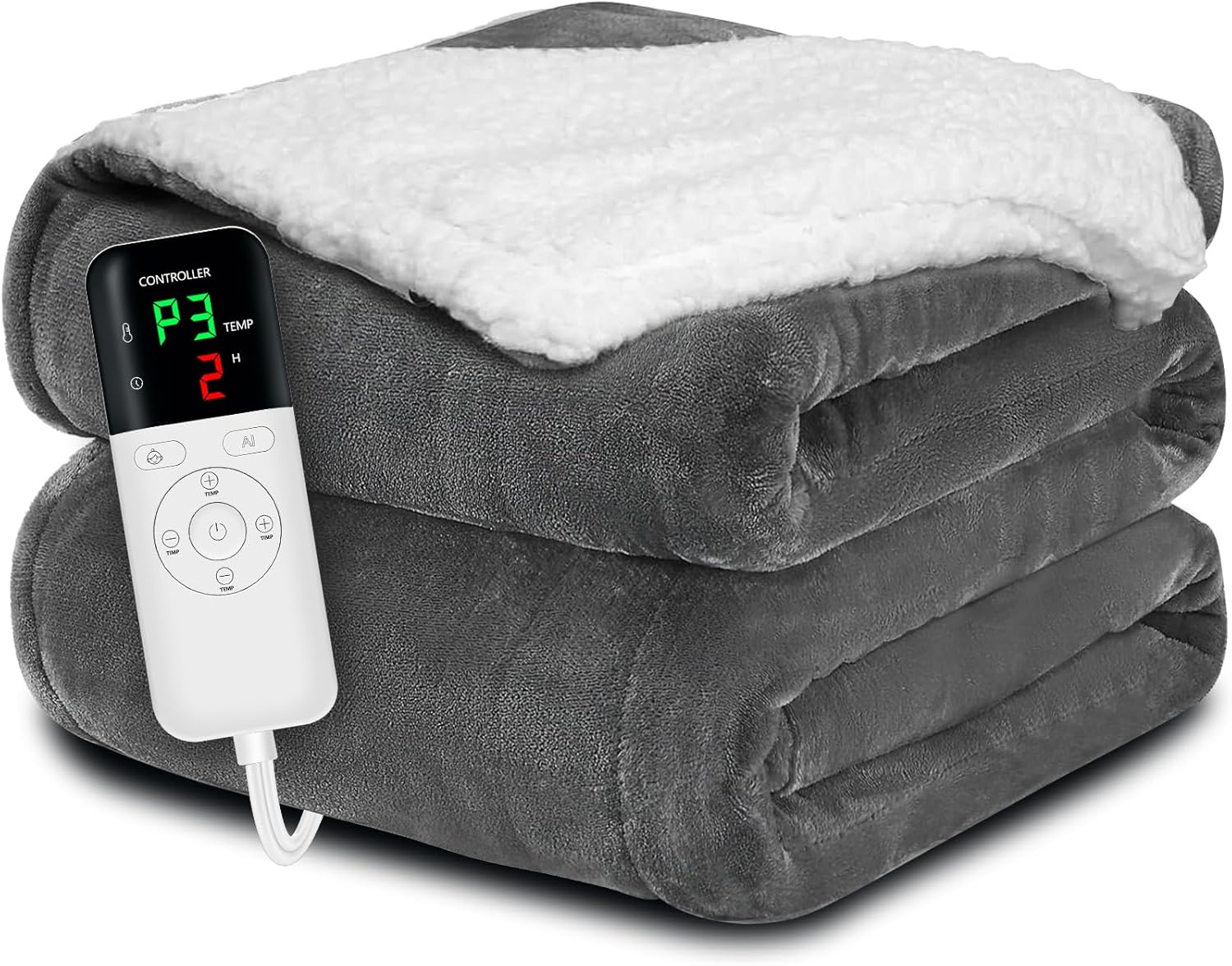 Heated Blanket Throw 50x60, Extra Plush 220GSM Flannel & Sherpa with Child Lock | 6-Level Smart Adaptive Heat & 8Hr Timer | ETL Certified Electric Blanket for Full Body Comfort