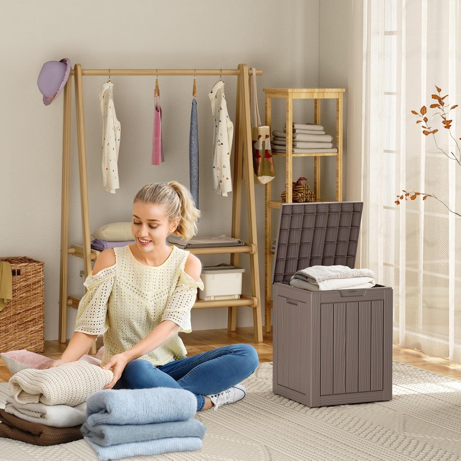- TRANSFORM YOUR SPACE: Whether used indoors as a laundry storage solution or outdoors for patio items like cushions, garden tools, this patio storage box excels. Its multi-functional design makes it suitable as a side table, patio seat, storage bench, or footstool