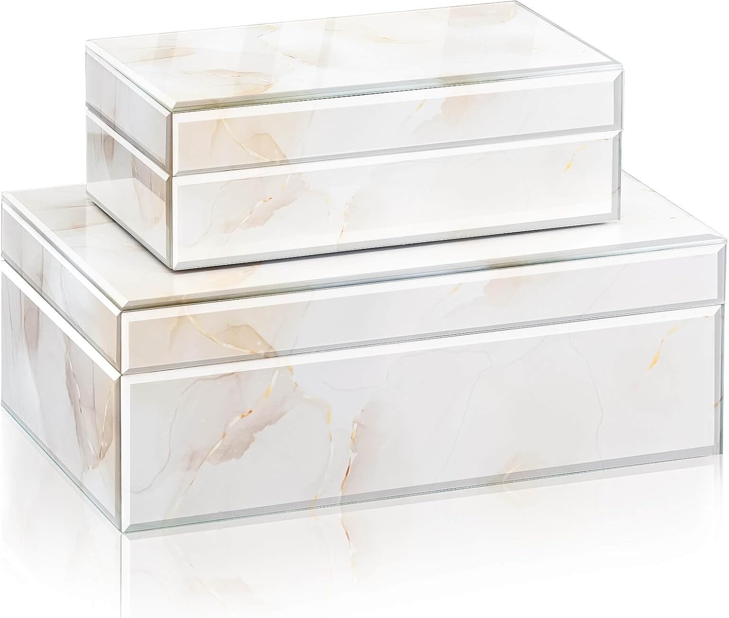Homde Glass Decorative Storage Box: Set of 2 Boxes for Home Decor - Large Organizer with Lids for Decorations