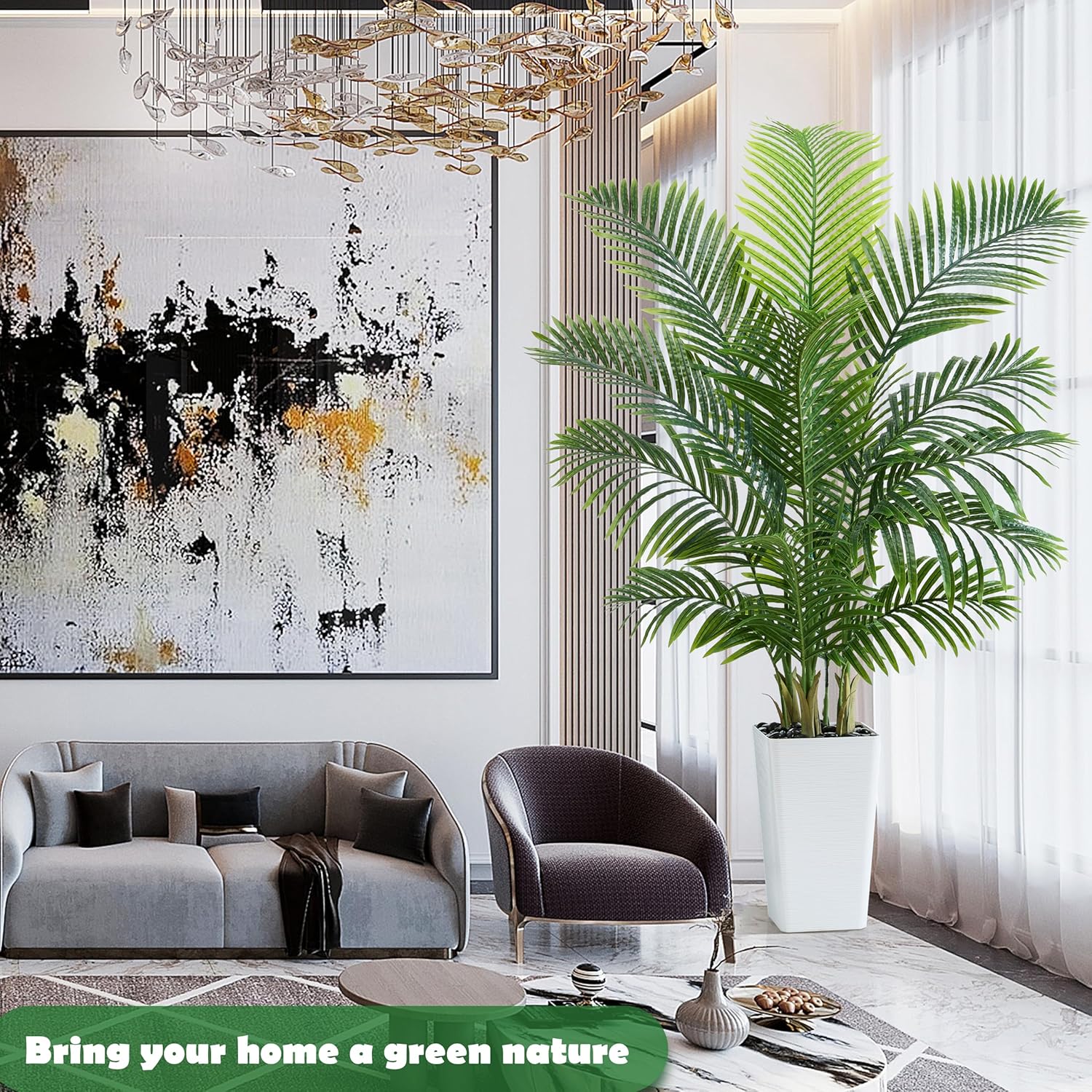 - Unbelievably Realistic Design - This fake tree from textured trunks to lush green fronds, this areca palm looks so real, you’ll forget it’s artificial. All the beauty, none of the upkeep!
