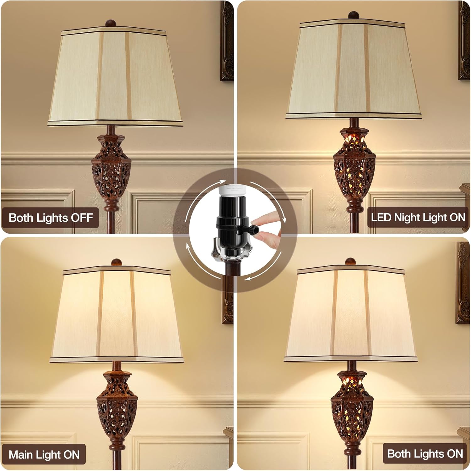 - EASY 4-POSITION ROTARY SWITCH: Effortlessly control lighting with a simple turn: Main Light Only, Soft Night Light Only, Both Lights On, or Off. Instantly adapt to any mood or activity .