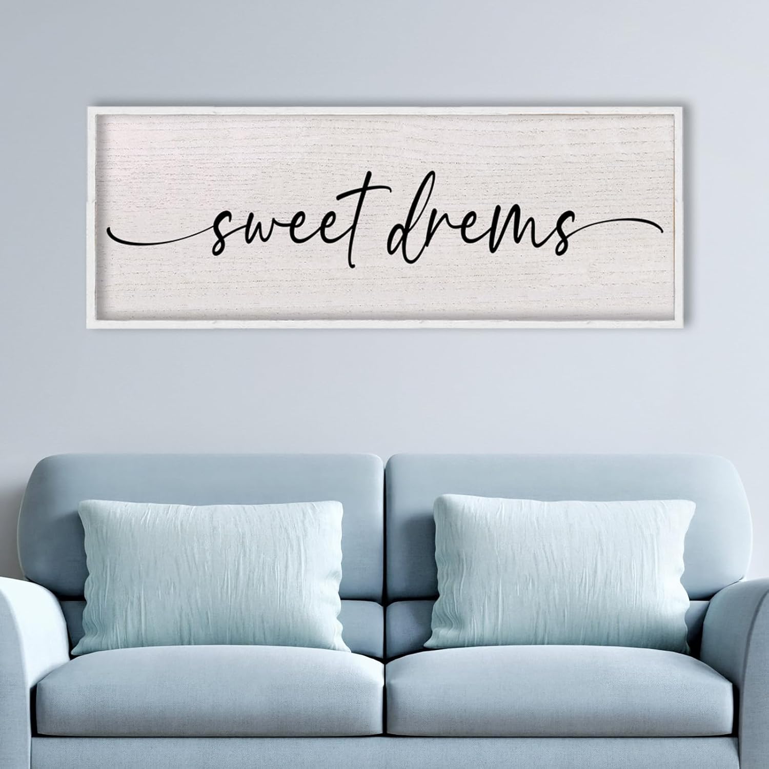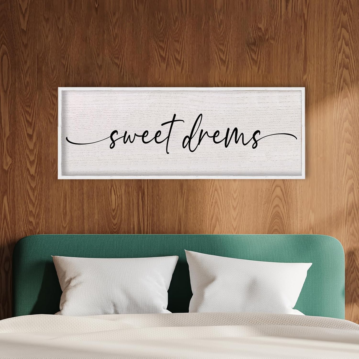 LuZhiQiang Sweet Dreams Sign Wall Decor Above Over Bed 40" x 15" Large Wood Framed for Guest Room Master Bedroom Hanging Wall Art (White)