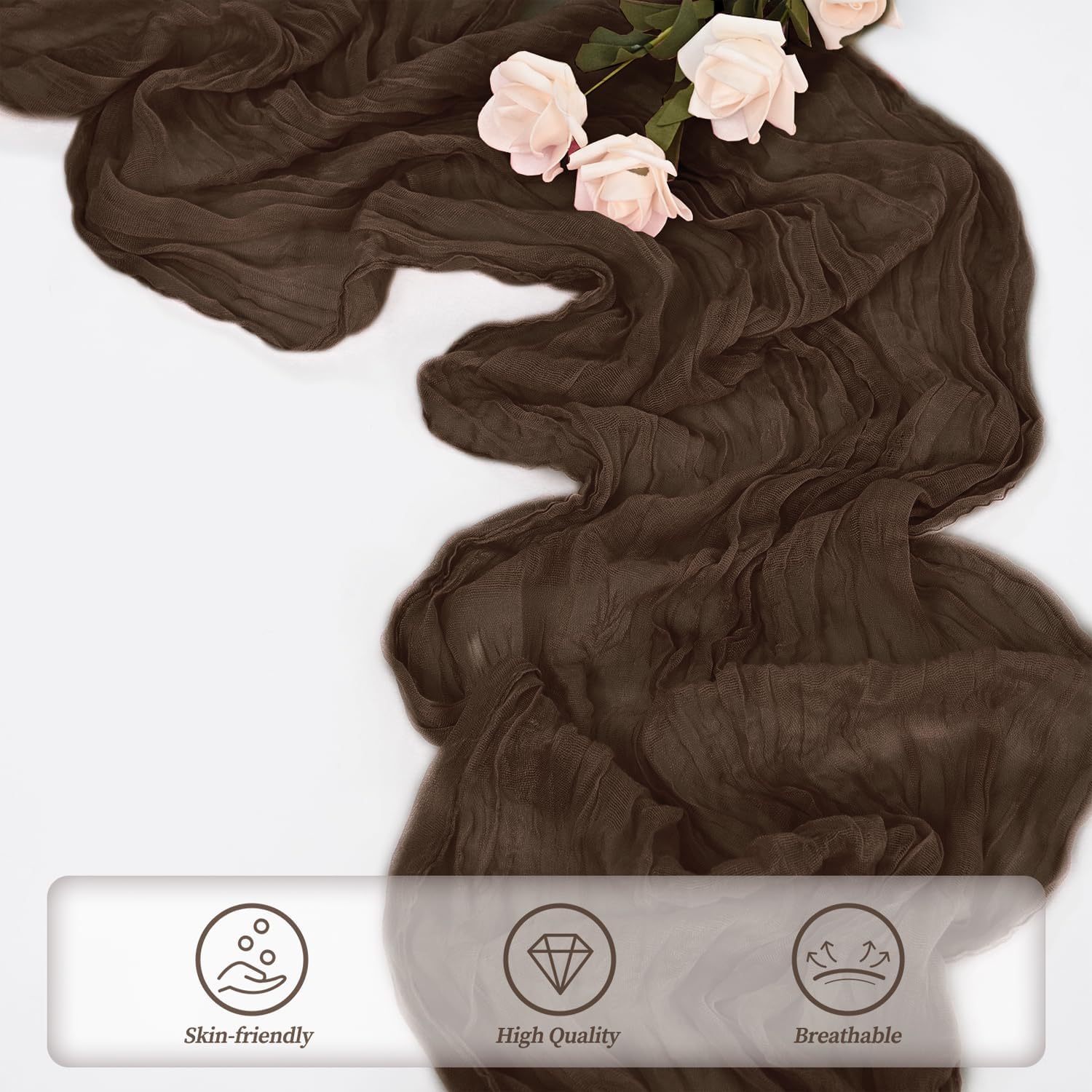 10FT 6 Pack Brown Cheesecloth Table Runner 20 x 120 Inch Long Boho Fabric Rustic Cheese Cloth Table Runner for Wedding Bridal Shower Baby Shower Gauze Sheer Birthday Party Table Decorations