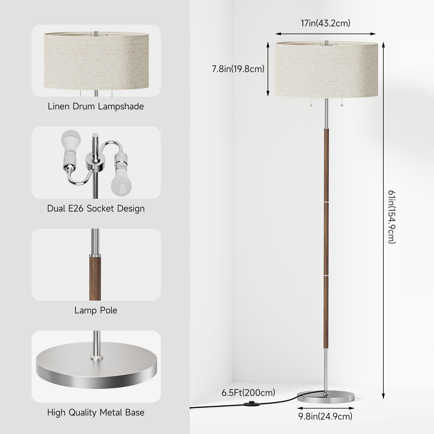 - ELEGANT E26 LAMP SOCKET DESIGN - This living room lamp has a built-in gold dual E26 Socket design with a drawstring zipper to turn the lamp on/off and change the lamp's color. Each drawstring zipper can control one bulb individually so that you can get bright light from one light. It also contains a foot switch (Note the foot switch is only used to turn the floor lamp on or off)