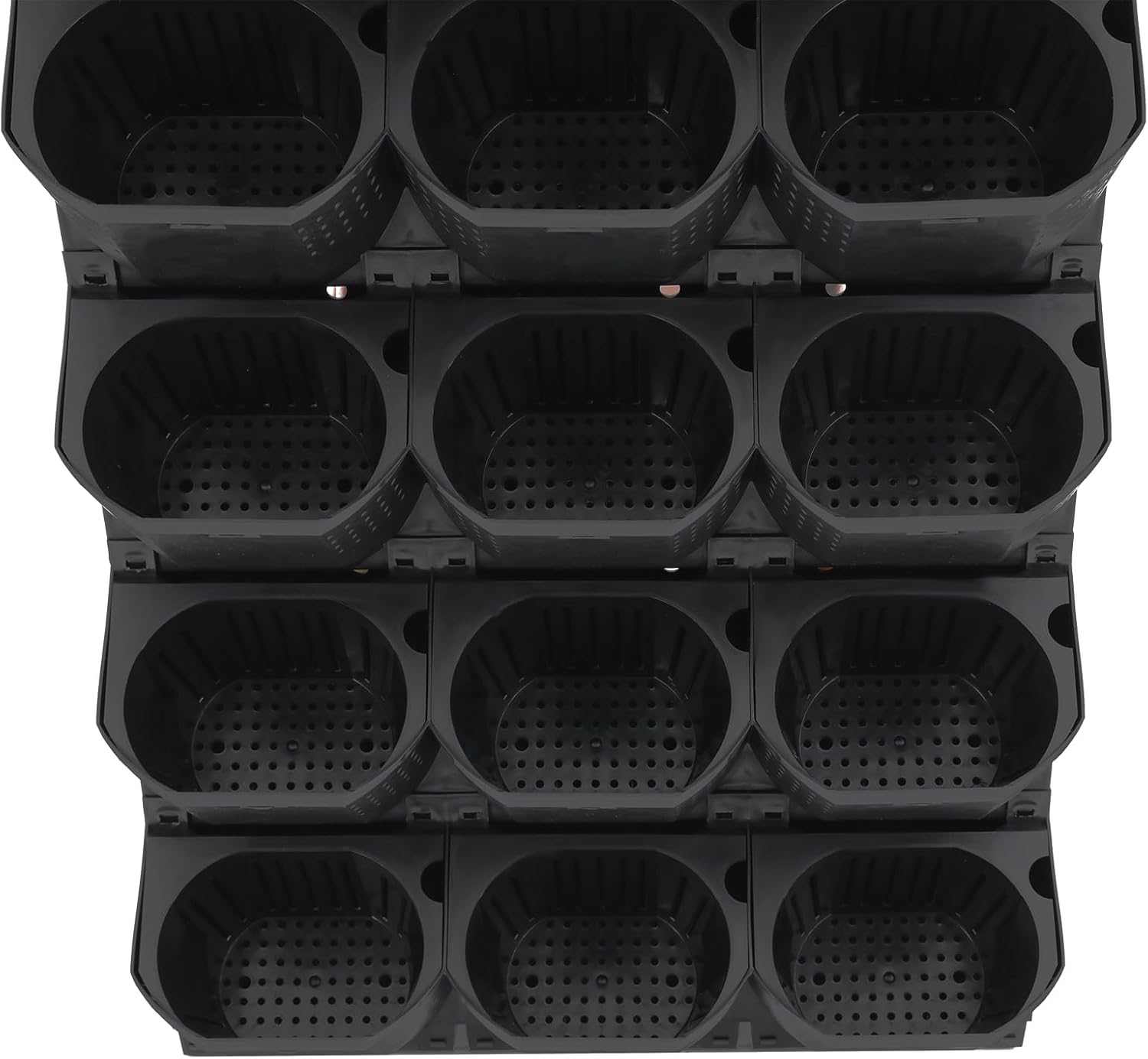 12Pieces 3-Pot Wall Planter Vertical Garden Plant Walls Wall Mounted Vertical Planter with Water-Storage Layer Stackable Wall-Mounted Flower Pot for Gardens, Balconies 180.78lbs Total Capacity (Black)