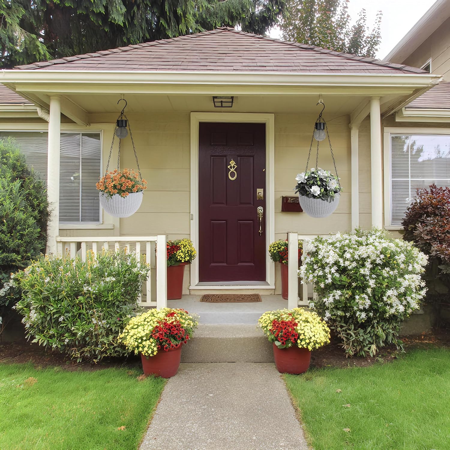 - Hanging Basket Planters: Each set includes two 29β tall hanging pots with chains and hooks-Artificial Rattan and special lighting design, the hanging sphere planters features a contemporary craft look for stylishly elevating any outdoor space
