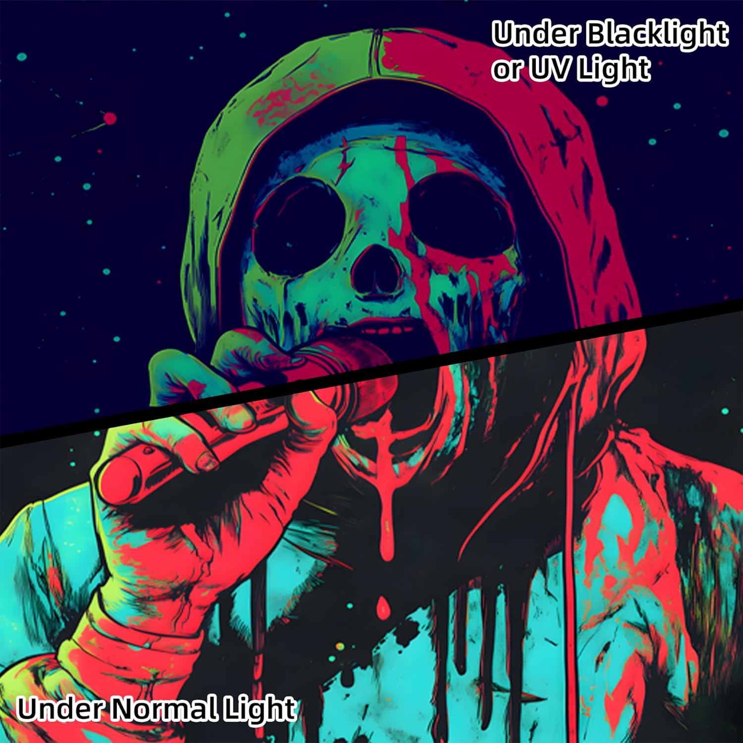 - 【Blacklight Tapestry】Designed for blacklight events, the intricate Halloween art on this blacklight tapestry pops with color in the dark.