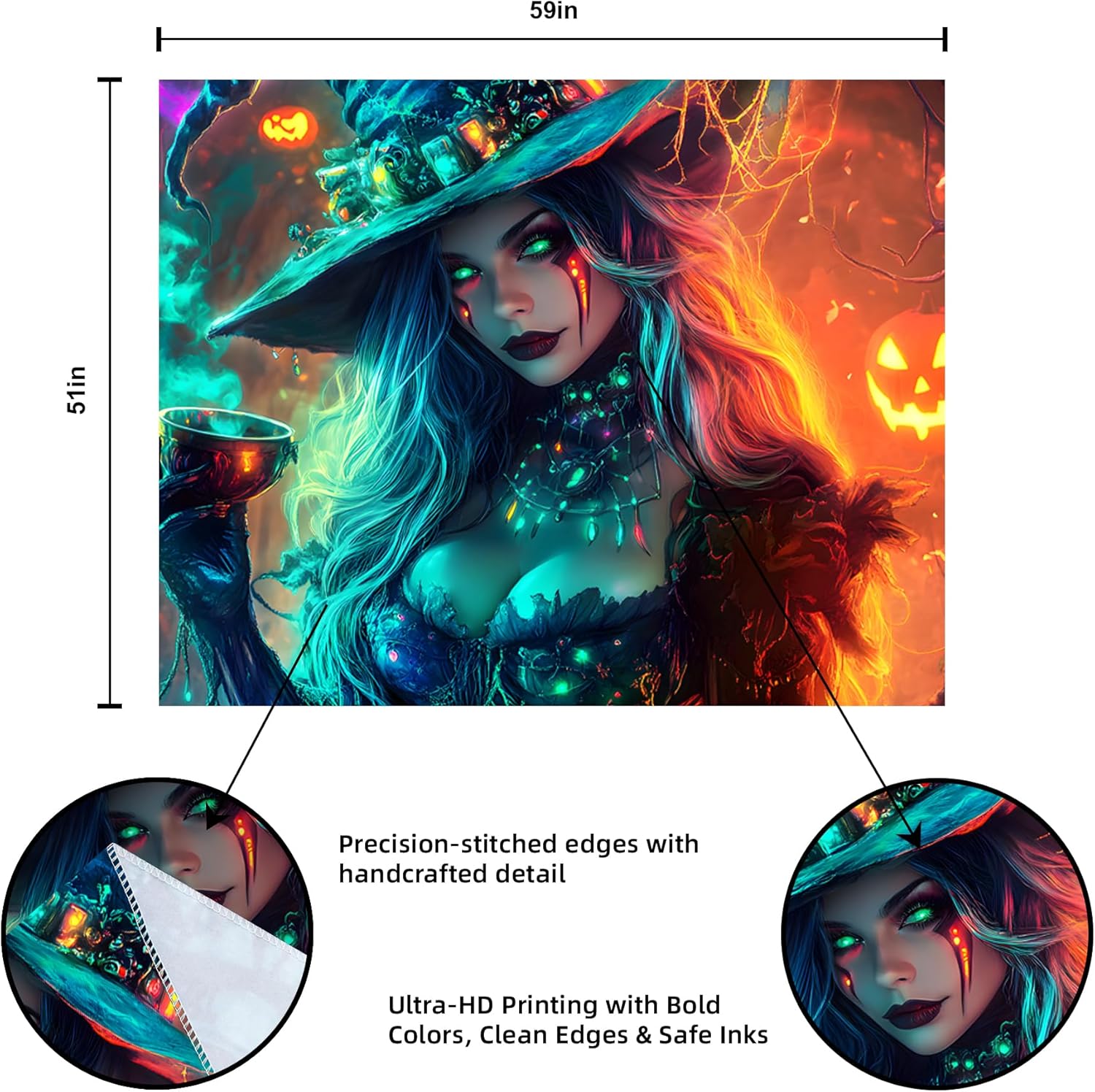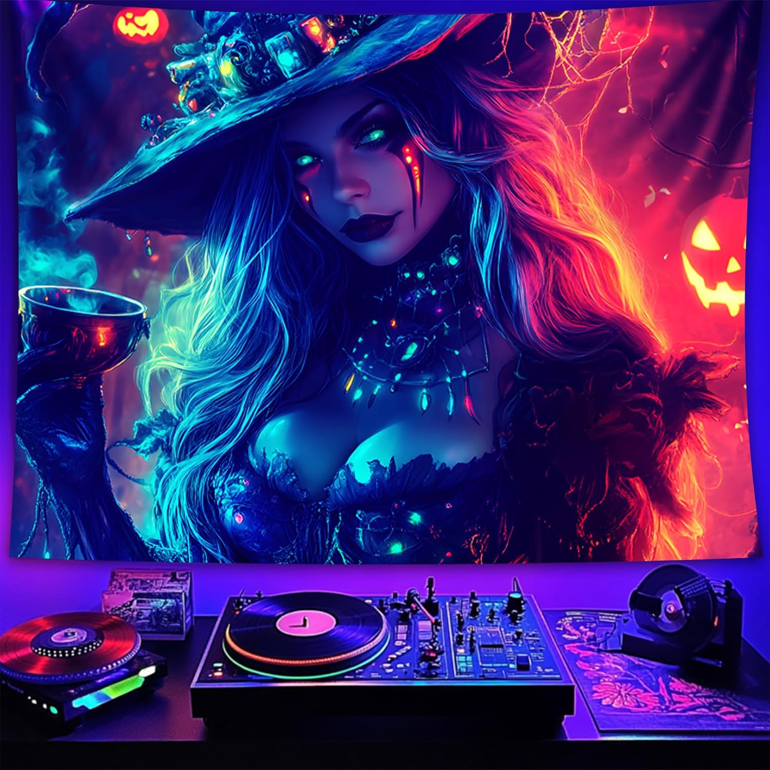 • 【Blacklight Tapestry】Designed for blacklight events, the intricate Halloween art on this blacklight tapestry pops with color in the dark.