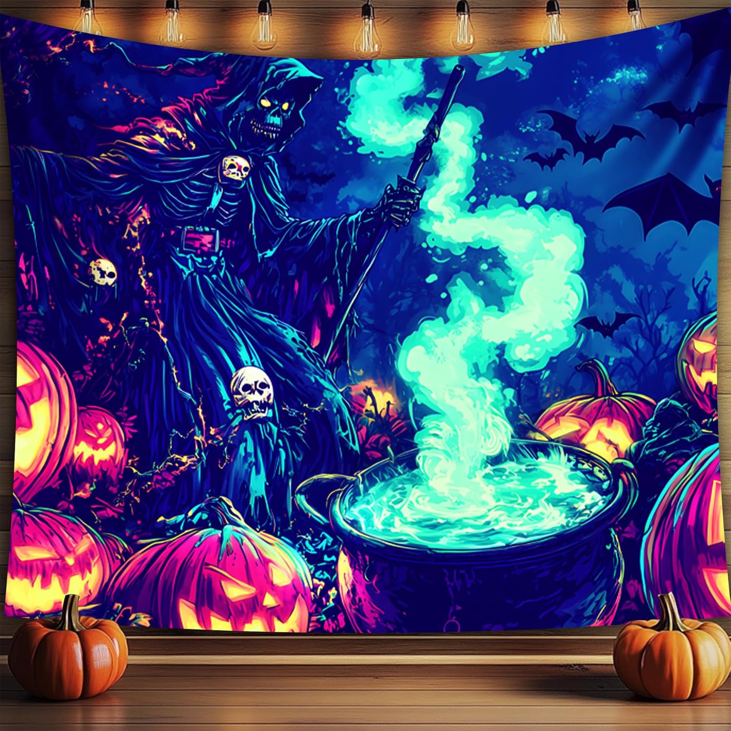 Halloween Tapestry, Blacklight Tapestry for Halloween Party Decor Hanging Tapestries Backdrop Wall Art Poster for Bedroom Dorm 79x59in