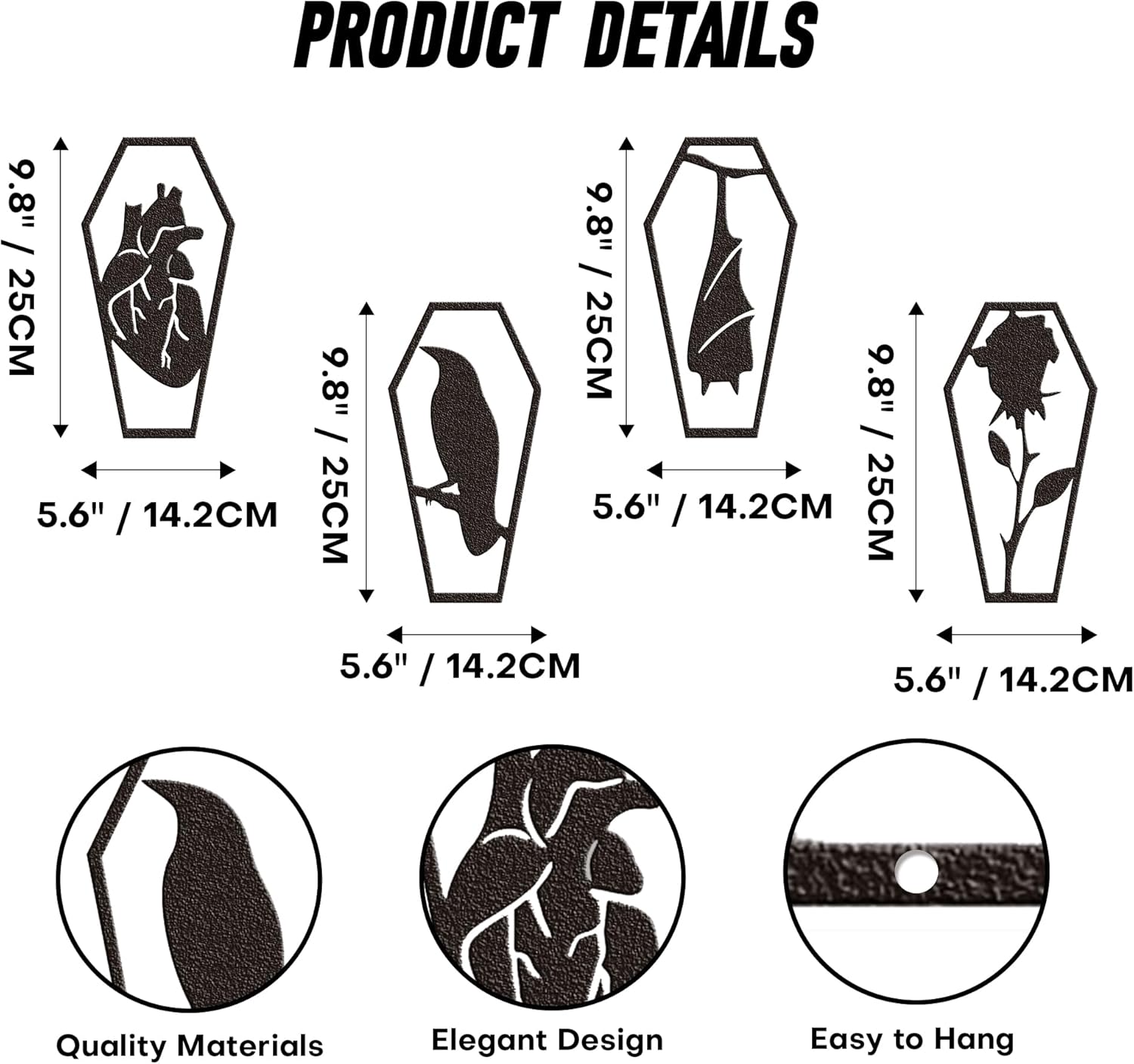 - Versatile Goth Wall Décor: Whether hanging in the bathroom, kitchen, office or living room, these heart, raven, bat, rose inspired coffin decor will pair perfectly with existing gothic wall decor like moon shelves, coffin trays or witchcraft decor, adding a touch of unforgettable elegance.