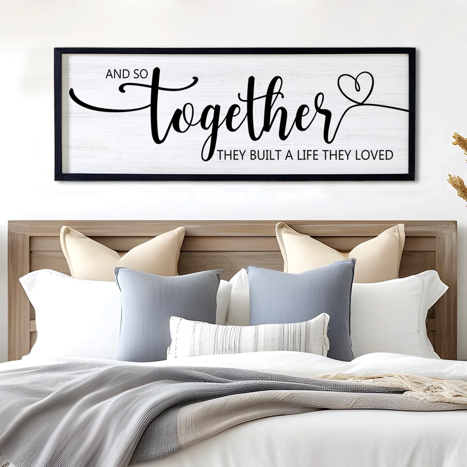 - 【Romantic Decoration】And So Together They Built A Life They Loved signs for bedroom hanging wood sign adopt minimalist letters on the white background, showing off the deep love for parents , your family, friends, lovers, sisters and brothers, adding a touch of elegant, and classic beauty to your space and giving people a calming feeling.