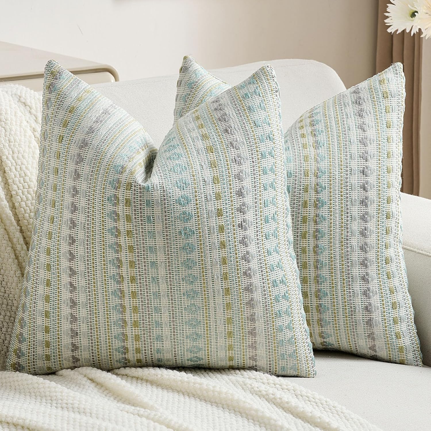 FUTEI Green Blue Decorative Throw Pillow Covers 24x24 Inch Set of 2,Soft Cozy Chenille Jacquard Textured Euro Pillow Shams,Boho Home Decor for Couch Bed Living Room