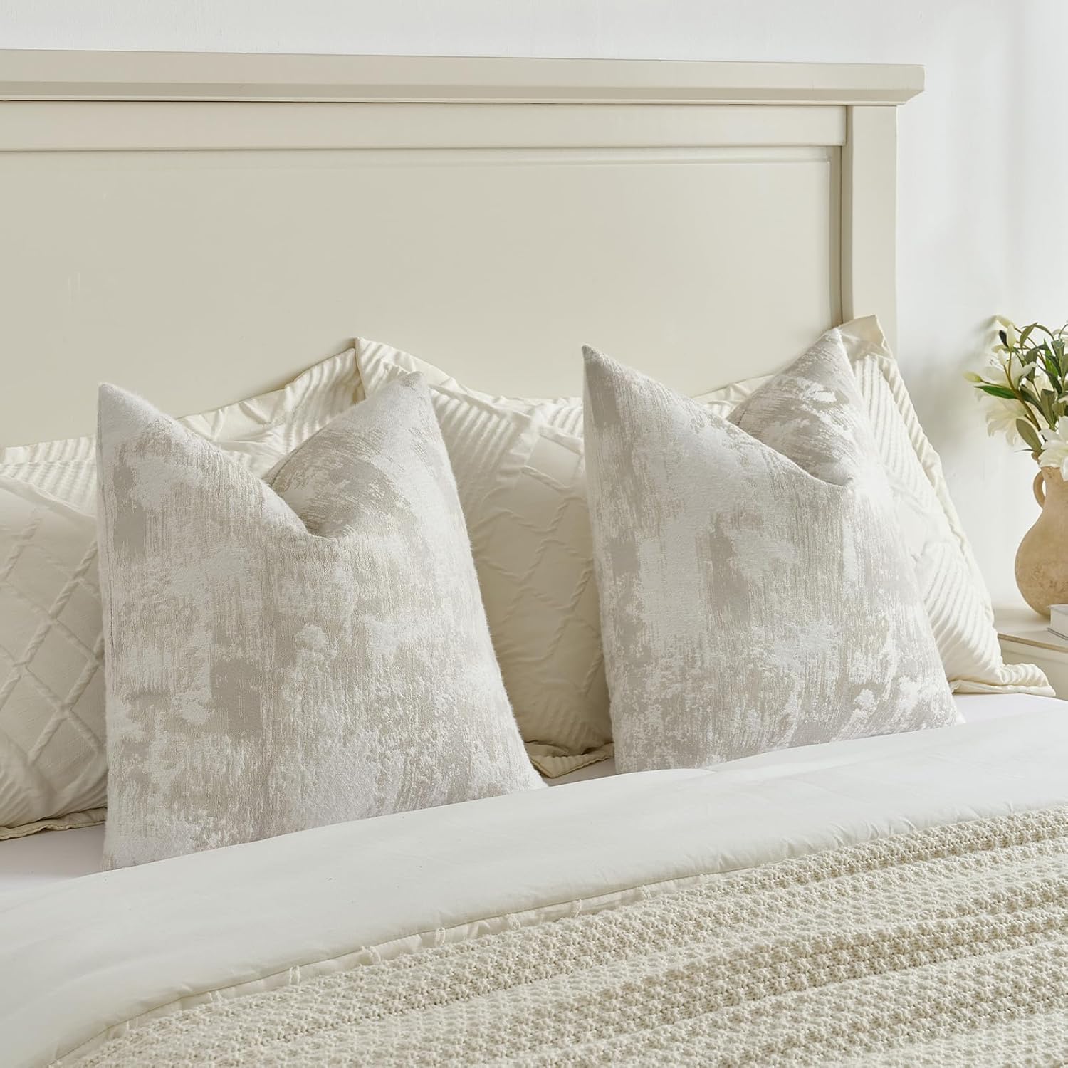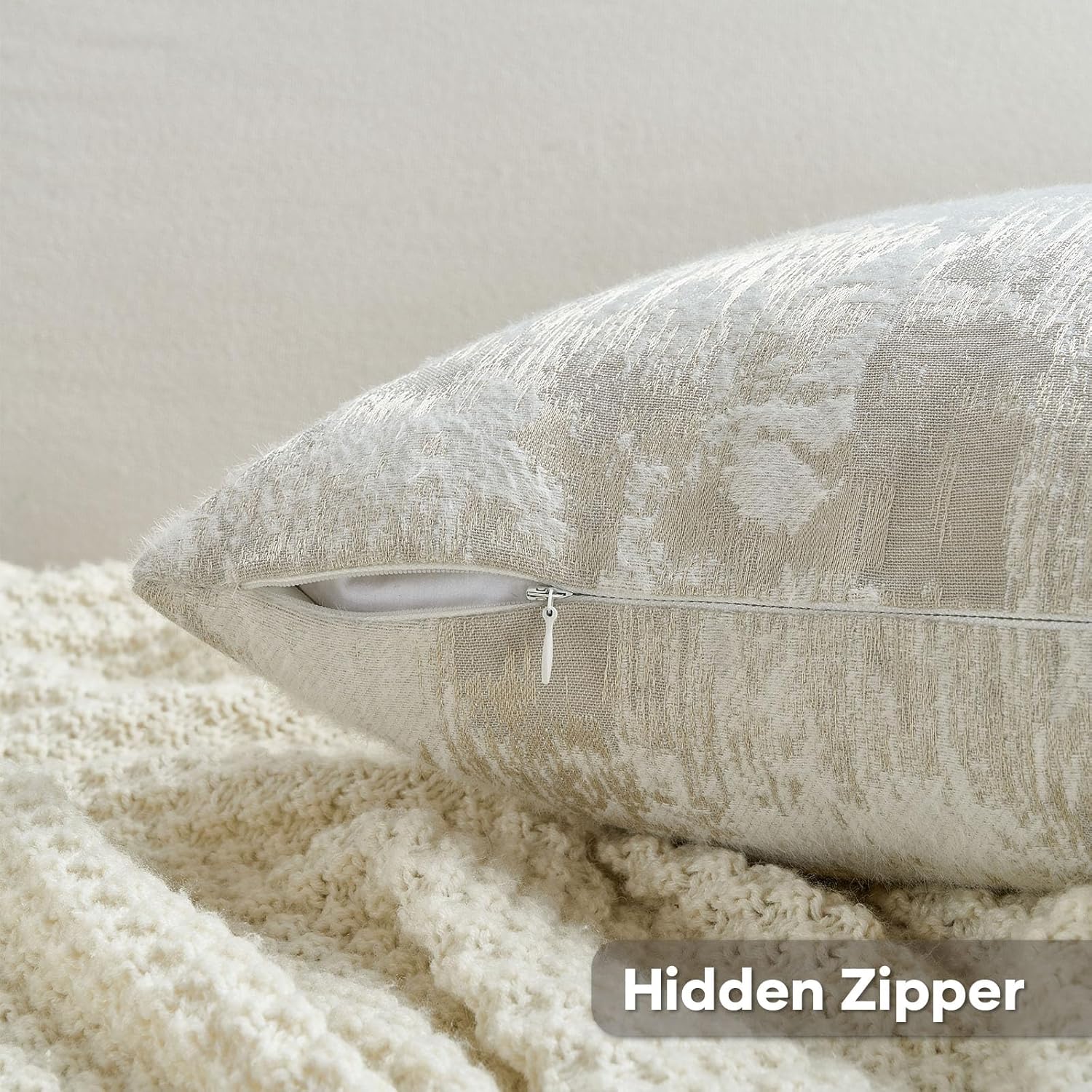 FUTEI Beige White Decorative Throw Pillow Covers 18x18 Inch Set of 2,Soft Faux Cashmere Jacquard - Textured & Cozy Cushion Case,Modern Home Decor for Couch Bed Living Room