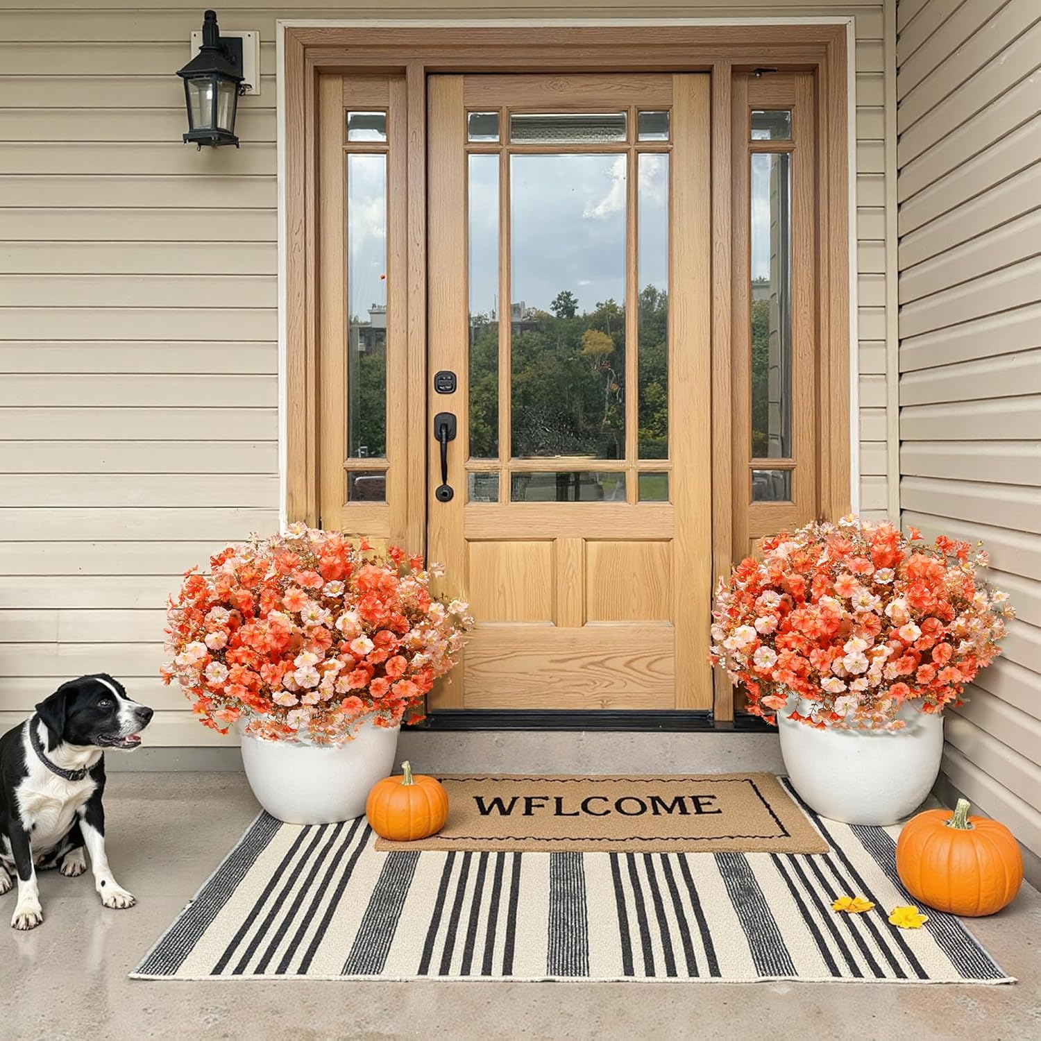 - Realistic Outdoors Plants Flowers Autumn Decoration: These artificial fall flowers for outdoors are real looking, these artificial branches exude a stylish and authentic appearance, rendering them ideal decorations for your home, outside, garden, yard, patio, balcony, front door, porch, flowerbed, planter, pot and window box, both indoors and outdoors.