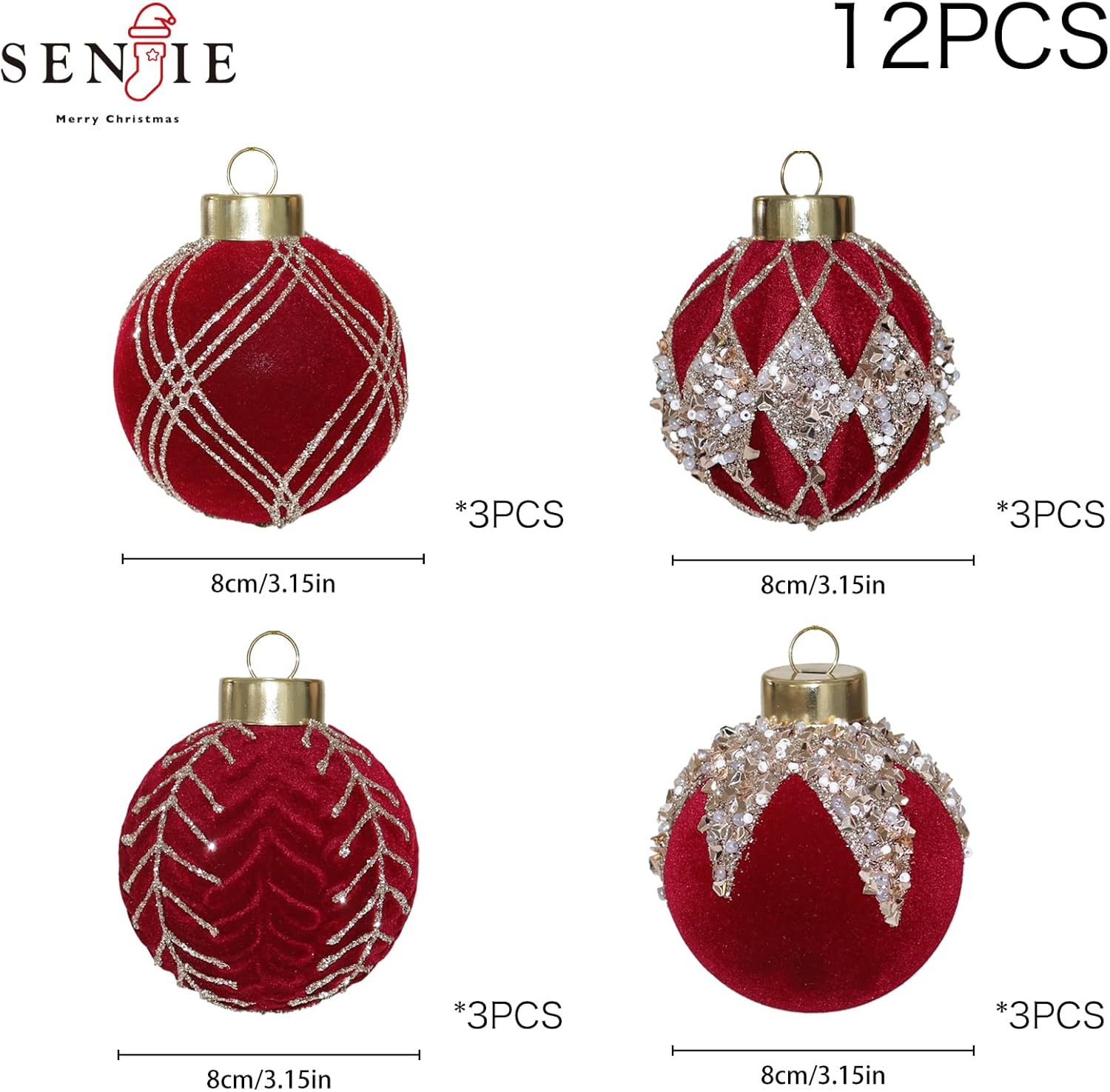 - Package List:the package contains 12pcs of flocked Christmas ball ornaments with glitter,3.15inches in diameter,solid color packed to choose,nice texture can fully meet your needs for decorating