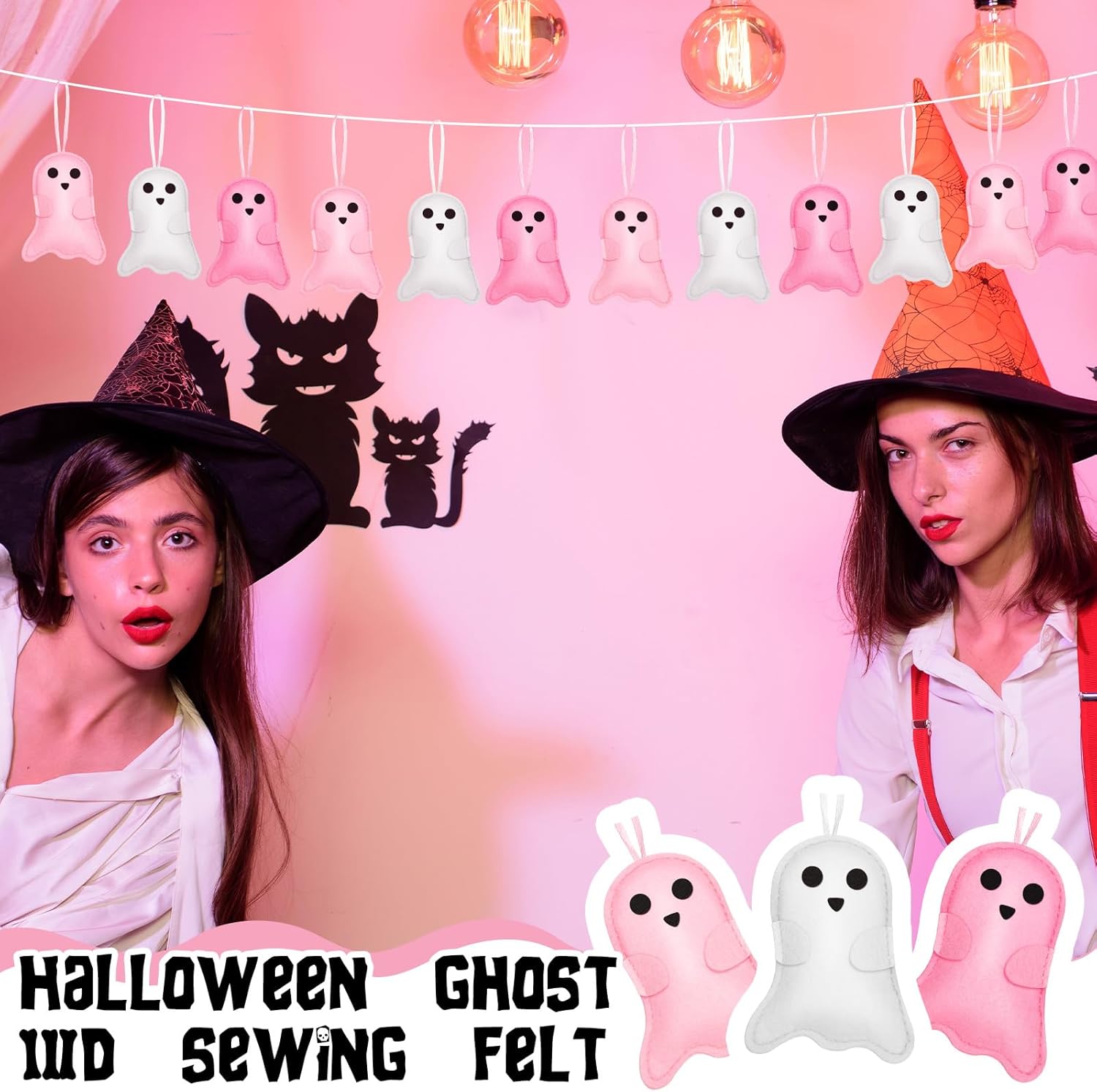 - Pink Halloween Felt Ornaments: infuse your home with the Halloween spirit using our set of 12 pink ghost felt ornaments; Featuring delightful light pink, pink and white color, these ghost ornaments capture the essence of lovely Halloween; Their delicate colors are ideal for setting a cute, festive mood wherever you choose to hang them