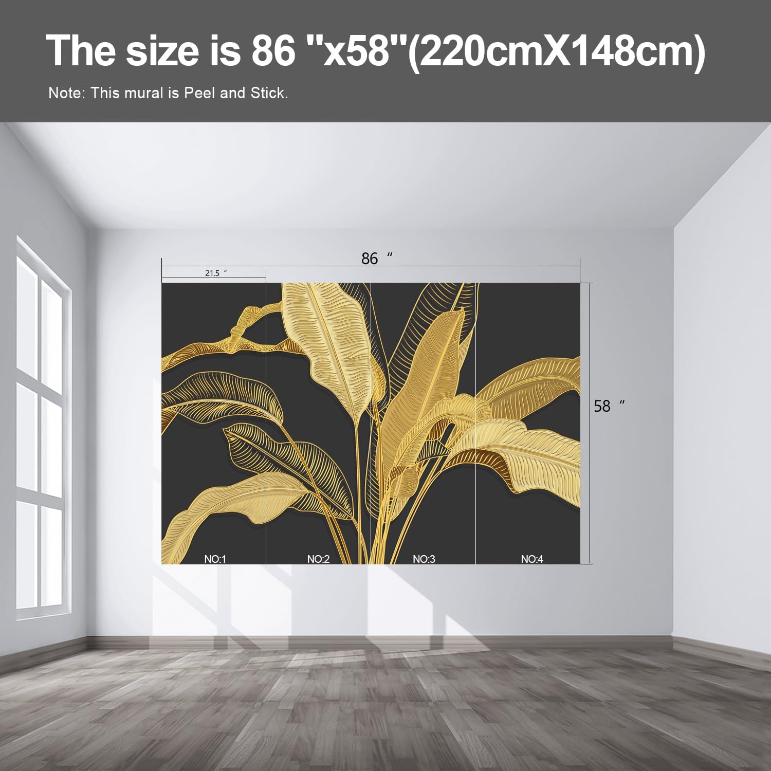 Gold Banana Leaf Wall murals Peel and Stick Wallpaper for Bedroom Living Room - 58"x86"