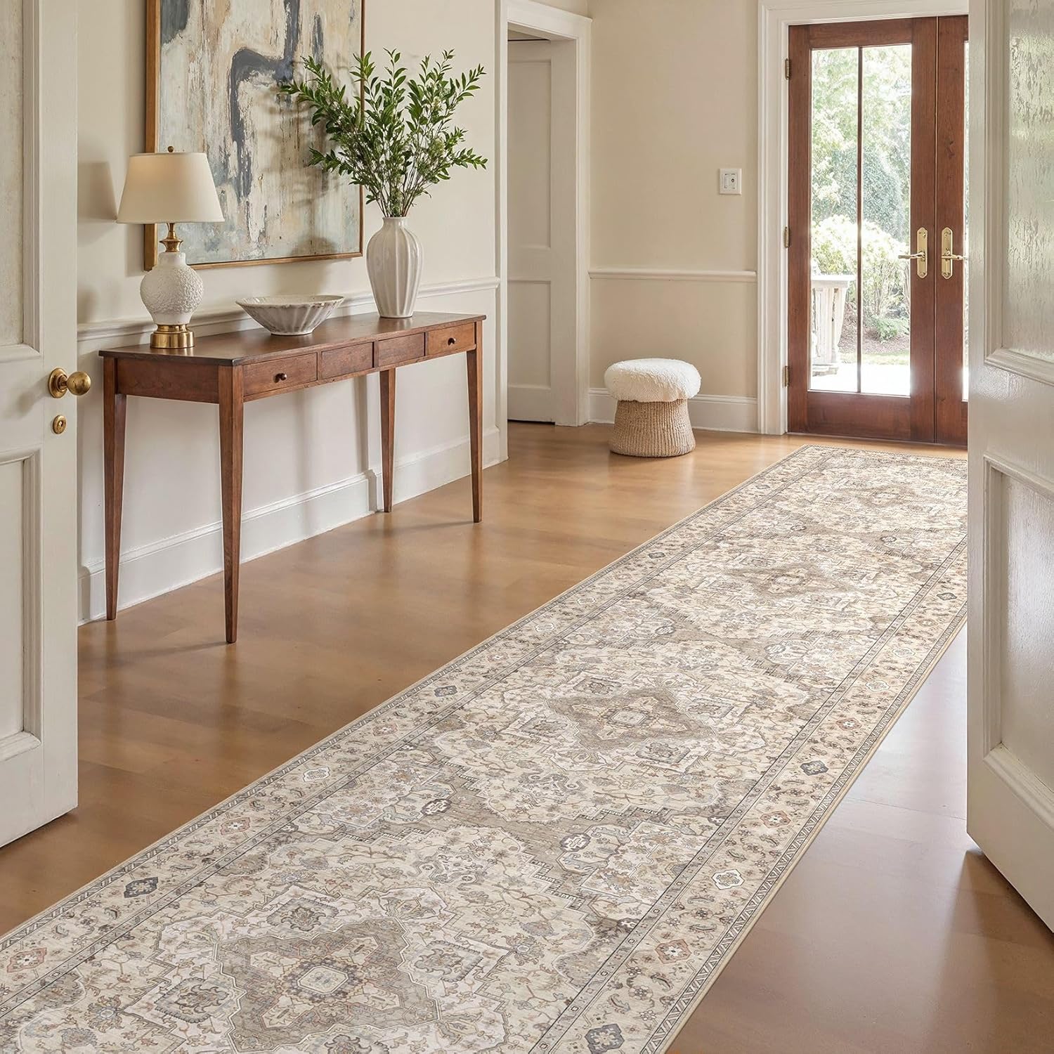 Washable 3x20 Runner Rug - Area Rugs Neutral Vintage Distressed Floral Farmhouse Boho Large Soft Floor Rug Indoor Carpet for Hallway Entryway Home - Brown/Multi