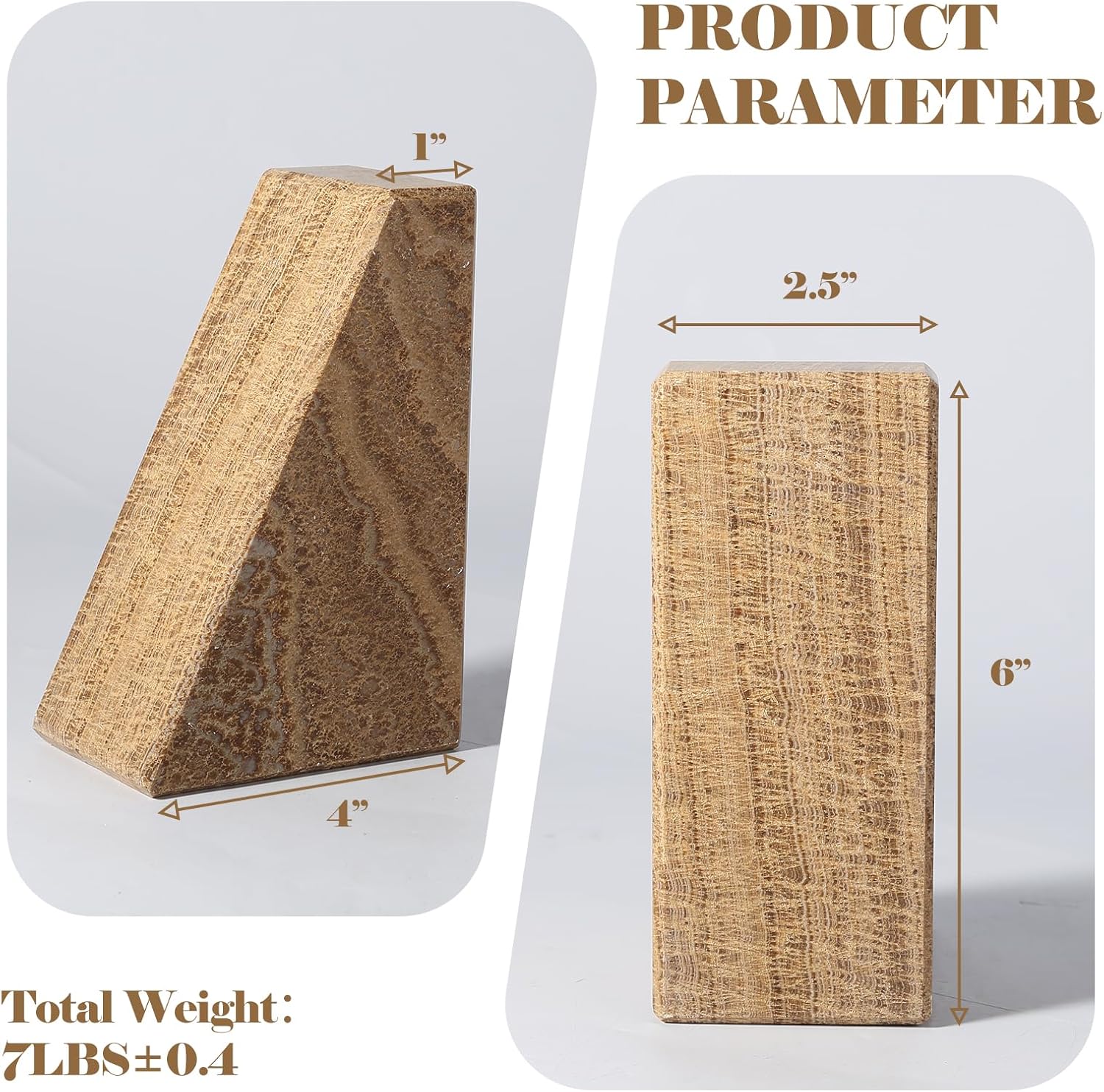- MARBLE BOOKENDS: Amber woodgrain veins flowing through translucent jade-green depths, as if moonlight crystallized.This aesthetic marble book ends also maintains long-term stability.