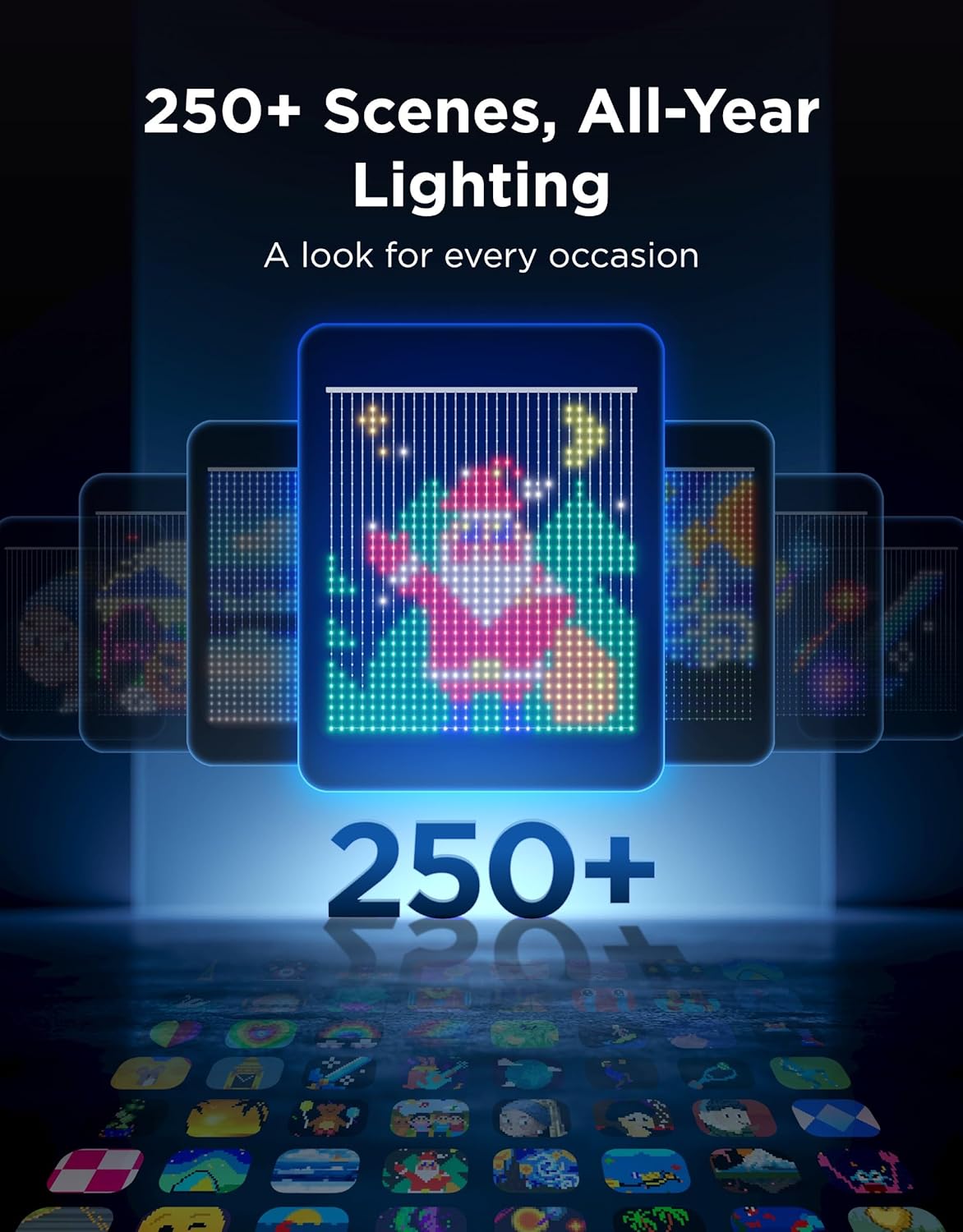- Year-Round Lighting: The curtain fairy lights bring any occasion to life with 250+ preset modes, tailored for holidays, parties, and daily ambience. Activate 10 music sync modes to let your lights pulse in perfect harmony with sound
