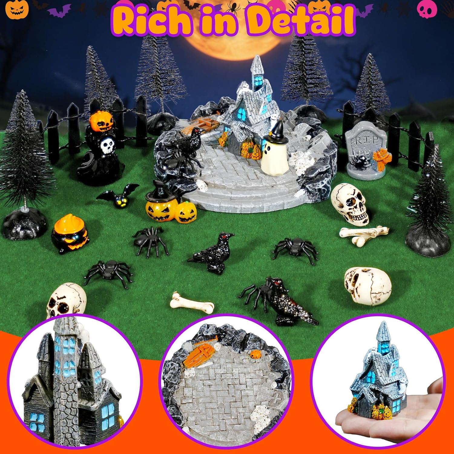 - DIY Craft Kit: Every Halloween resin miniatures are carefully crafted, you can use them to design Halloween countryside landscapes. You can also use it for crafts projects.