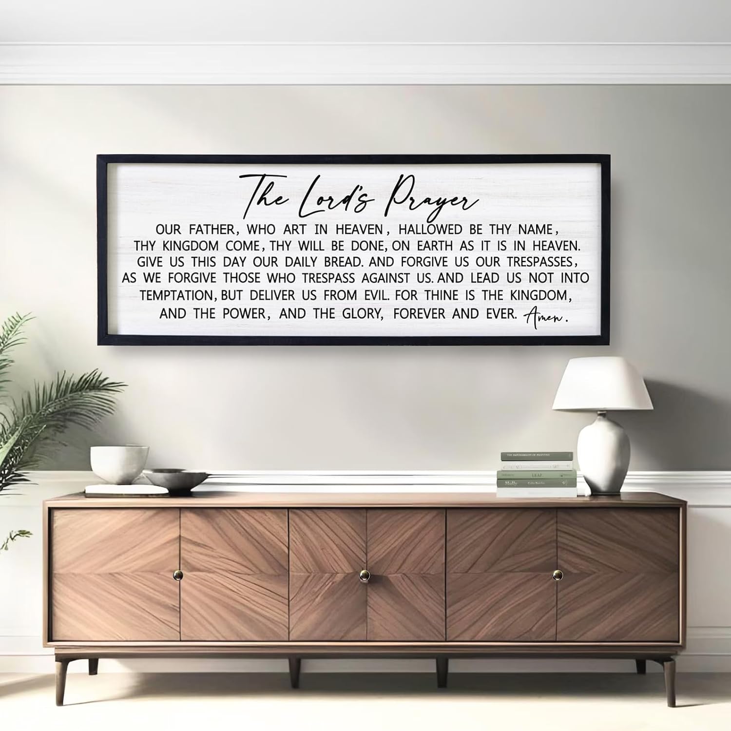 Our Father Prayer Bible Verse Framed Wall Art, 40''×15'' Black Horizontal Religious Christian Lords Prayer Sign for God Jesus Christ Prayer, Rustic Holy Inspirational Catholic Scripture Decor