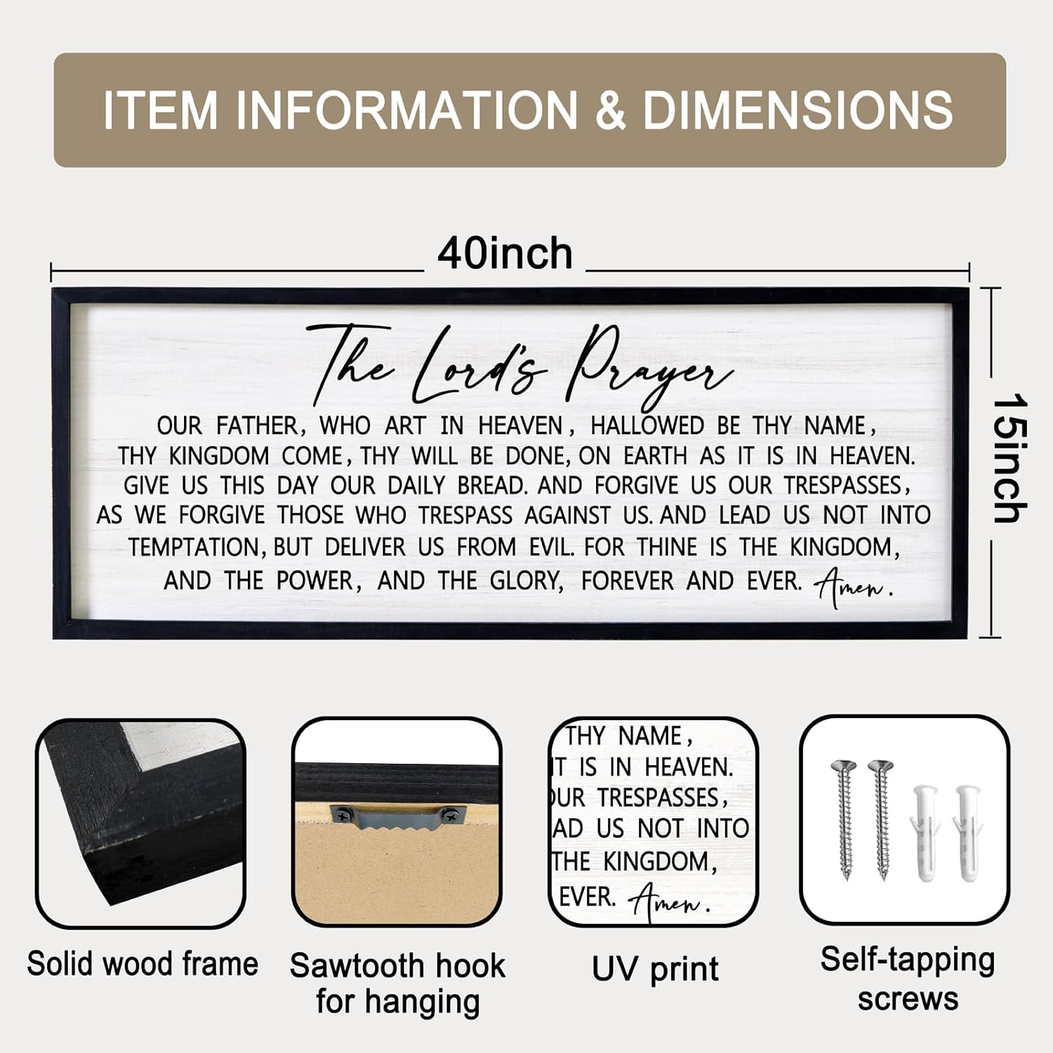 - 【Easy Installation】The inspirational our father prayer wall decor is equipped with plastic expansion and self-tapping screws, which will take you less than ten minutes to install it on the wall.