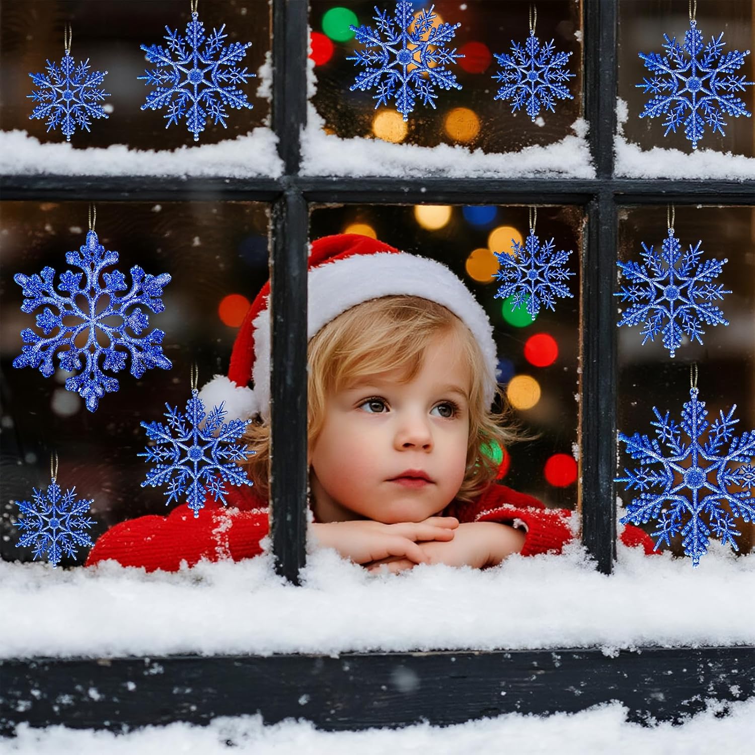 - Easy Hanging, No Hassle:Each piece includes a pre-punched hole and a silver string, perfect for hanging christmas decorations quickly and neatly. Whether you’re creating a garland or hanging snowflakes from ceiling, they’re easy to install and reposition as needed
