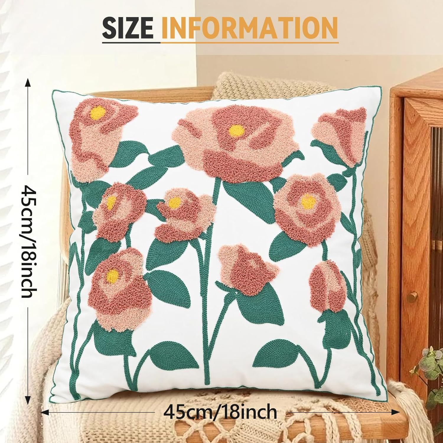 - Hidden Zipper Design:Each set includes one 18"x18" (45x45cm) farmhouse floral throw pillow cases with discreet zipper closures for seamless aesthetics;effortlessly complements living rooms, bedrooms,reading nooks,or sunlit windows