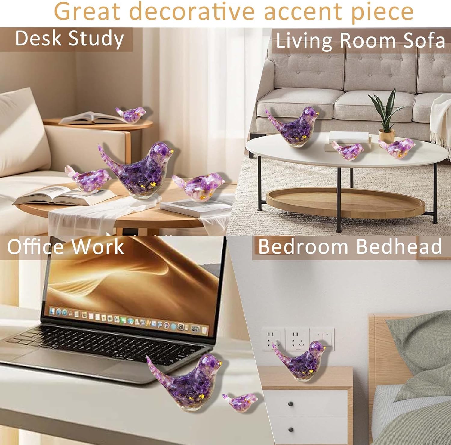 Crystal Bird Figurines, Resin Animal Statues, Miniature Decorative Gravel Birds, Home Decor (4PCS-Amethyst)