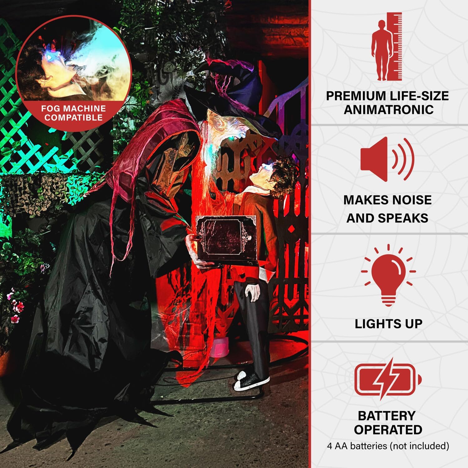 - Premium Lifesize Animatronic: Extension from top seller Soul Sucker - Frighten guests and trick-or-treaters with this premium quality spine-chilling Halloween decoration