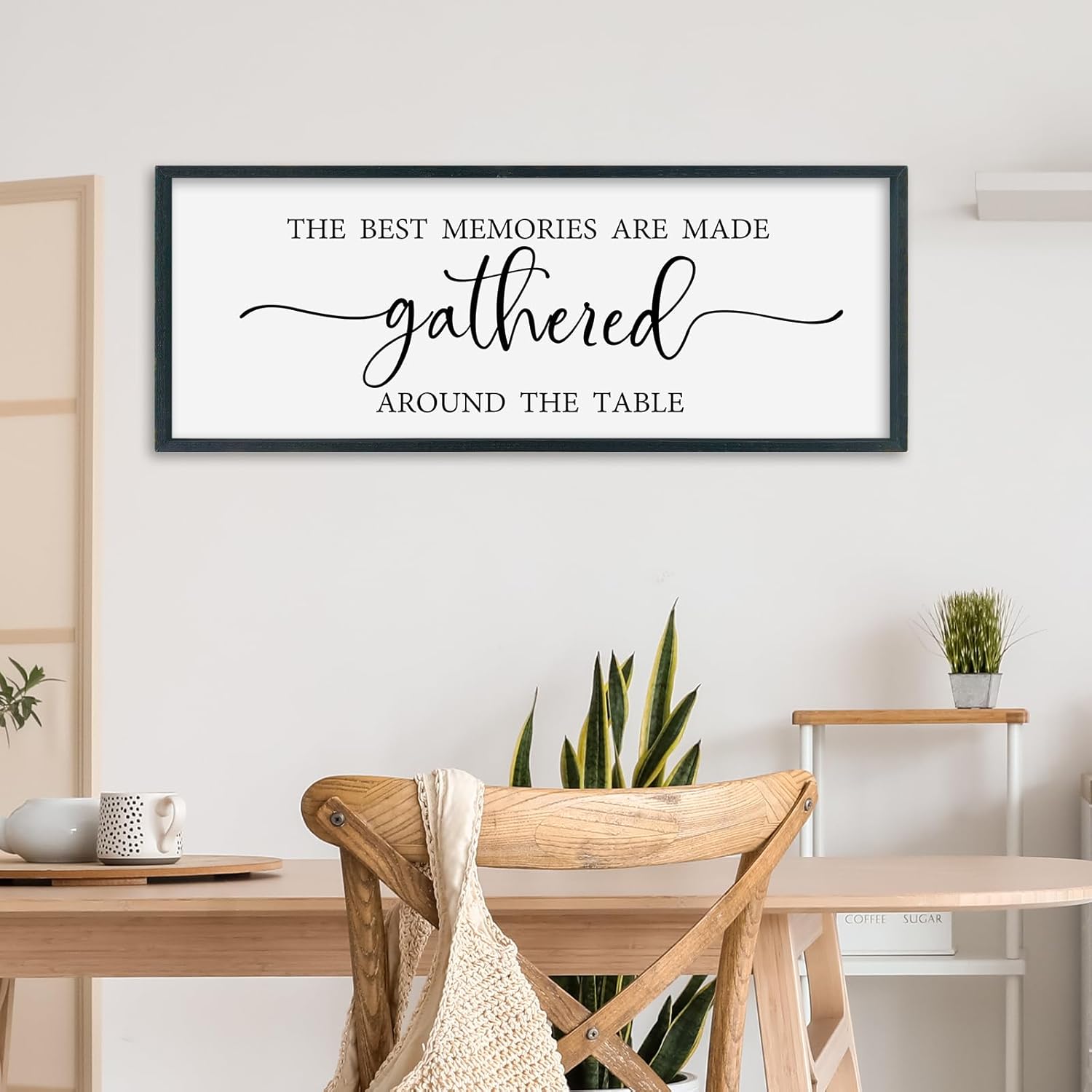 SRSZHIYUE The Best Memories Are Made Gathered Around The Table Sign Wall Decor Art 32"×12" for Kitchen Dining Room Large Wood Framed Wall Hanging (Black)