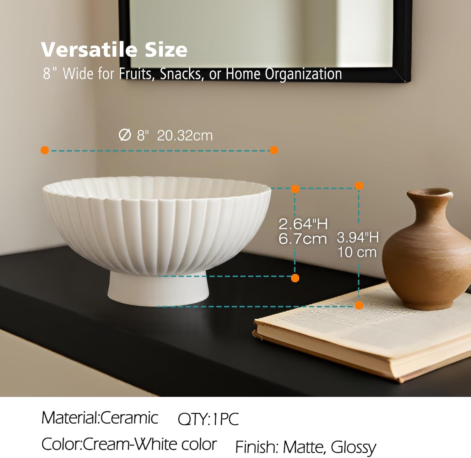 - Dual-Purpose Luxury Design β Our 8-Inch White Fluted Pedestal Decorative Bowl is designed with a pedestal base,features a effortlessly enhances any space in your home. Use it as a stylish key and mail catcher by the entryway, a convenient pocket-emptying station in your bedroom, or as a charming seasonal display piece in living and dining areas. Its adaptable design complements all your decor needs.