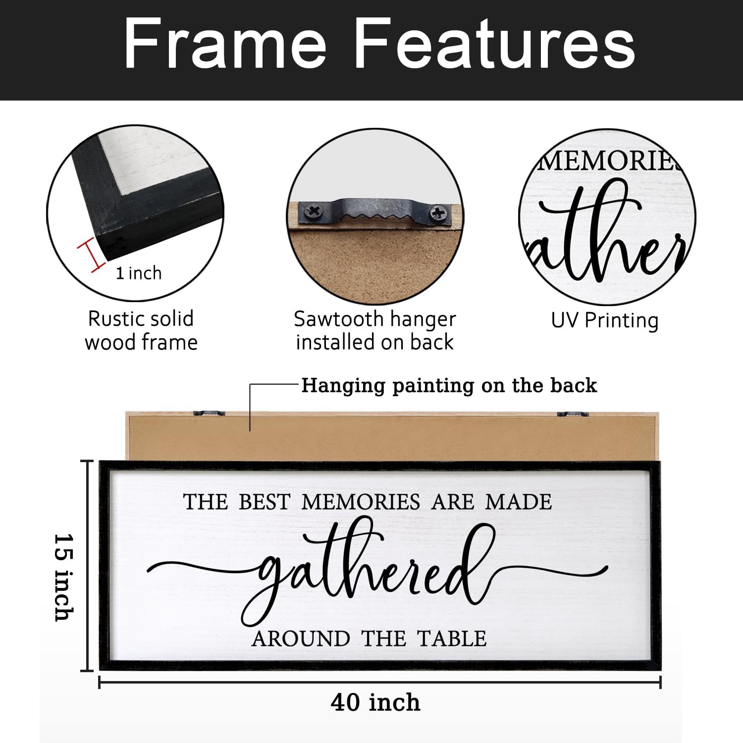 The Best Memories are Made Gathered Around The Table Sign Framed Wall Art, 40''×15'' Rustic Horizontal Plaque with Black Frame for Dinning Living Room, Long Home Family Wood Sign Wall Decor
