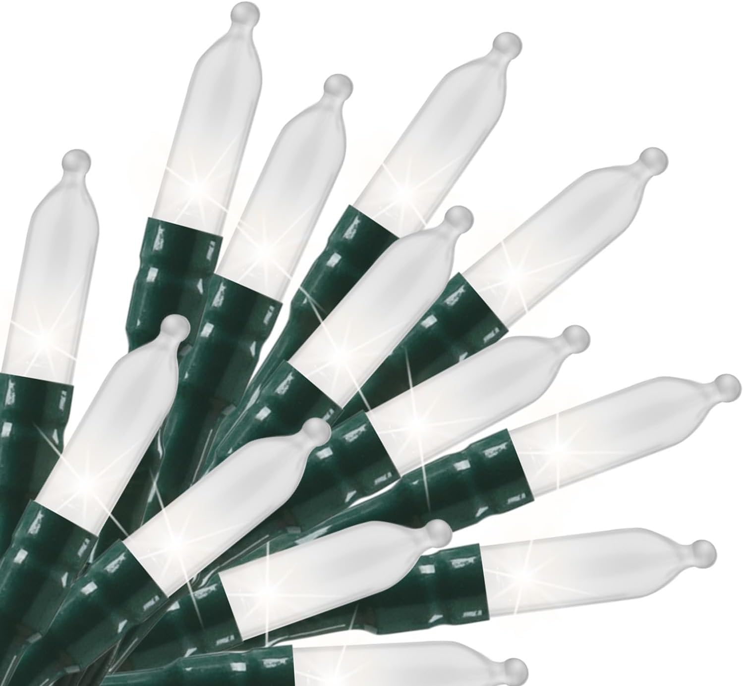 - Indoor Christmas Lights : 20 super bright pure white color LEDs lights on 8 Ft. long wire with 4 inches distance between LED bulbs and 20 inches clear cable between wire and battery box