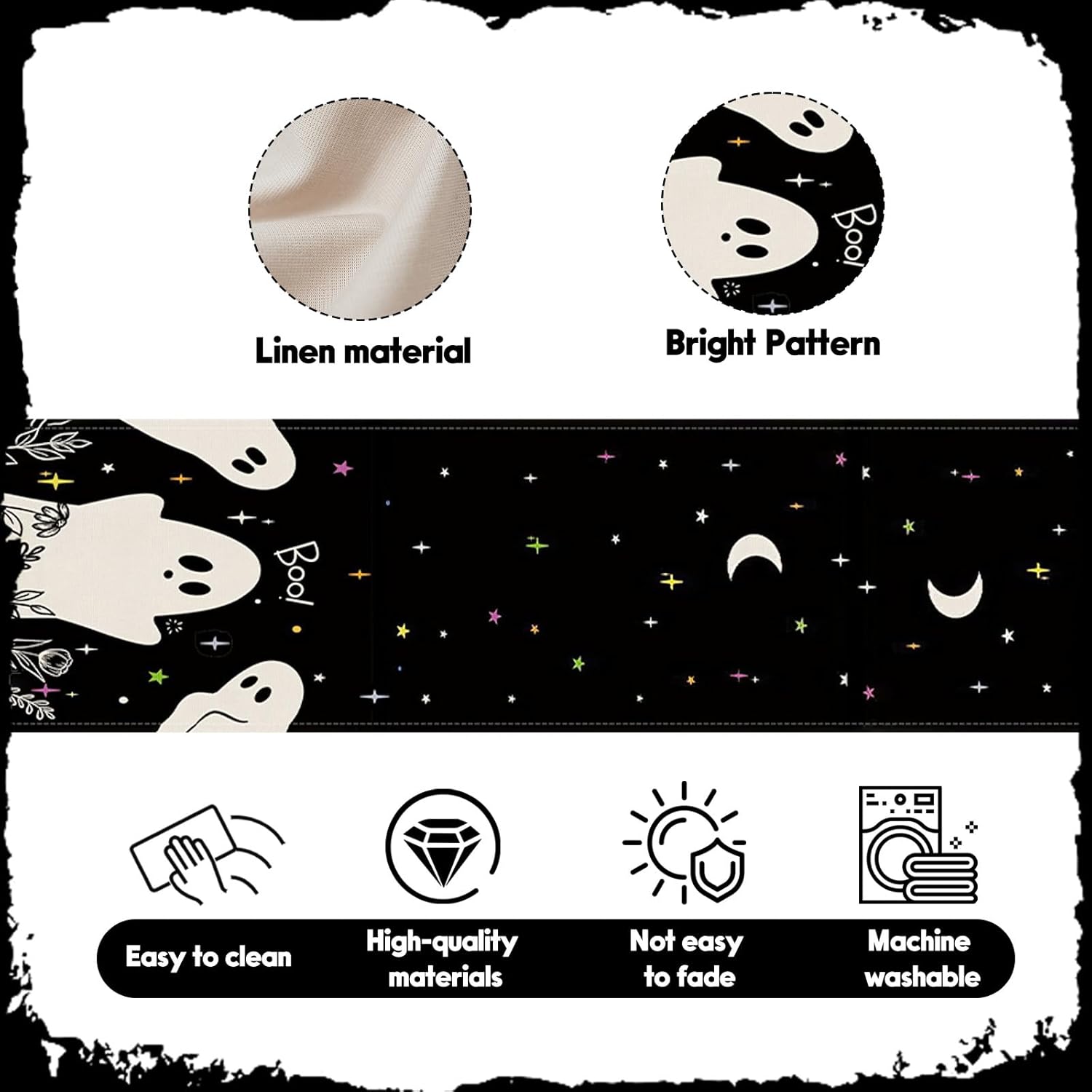 - Easy Care: Our Halloween table runner is not only stain resistant and durable, but also easy to clean. After washing, it will not fade or shrink. After light ironing, it can be laid flat and dried for reuse
