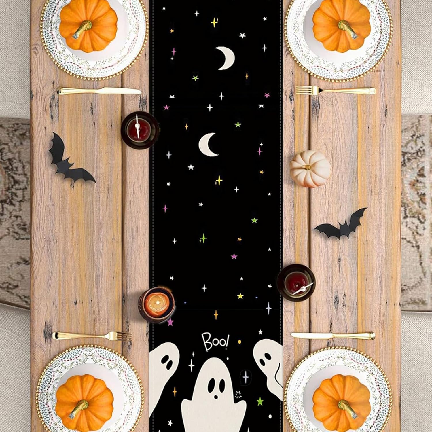 - Package Content: Includes 1 Halloween table runner (13x36 inches), printed with ghost patterns and classic Halloween elements, instantly turning your dining table into the focus of the holiday