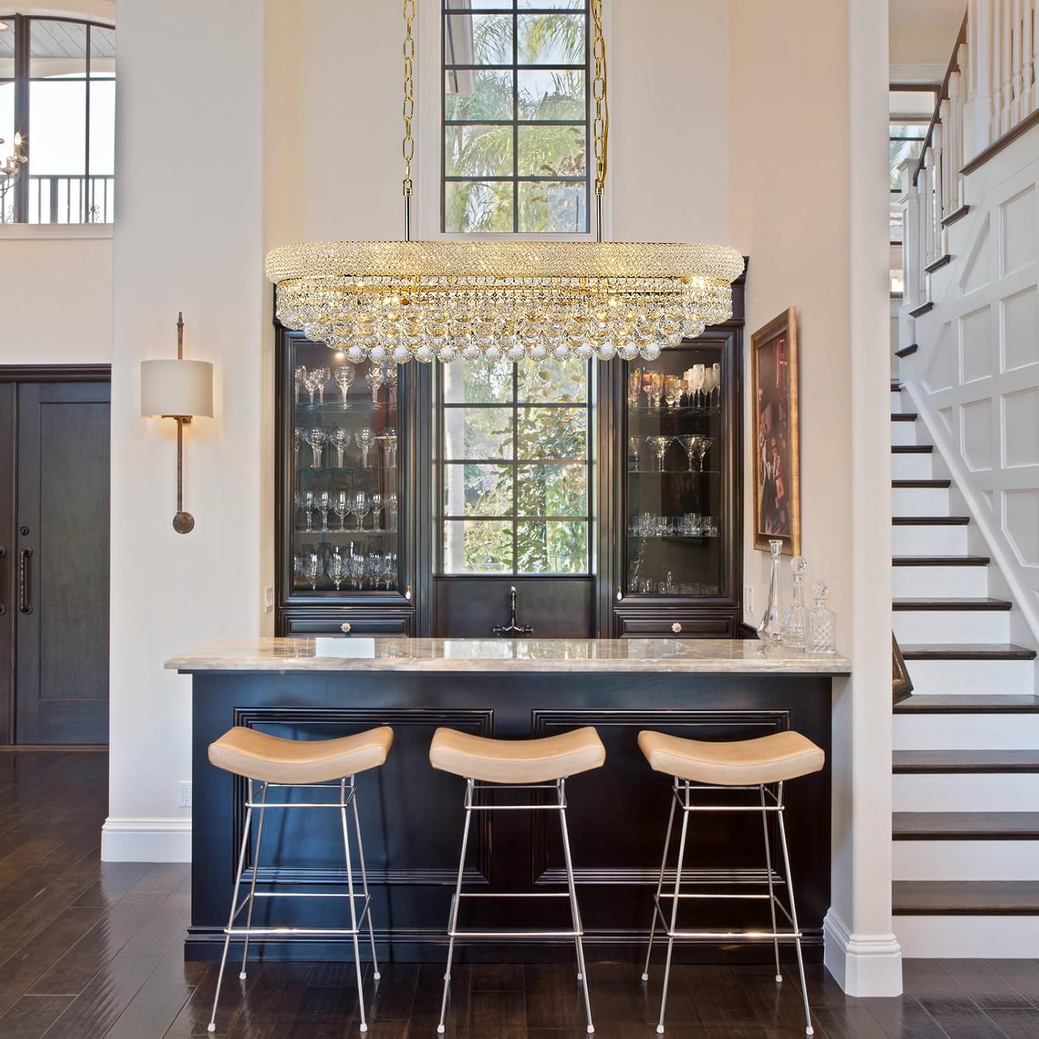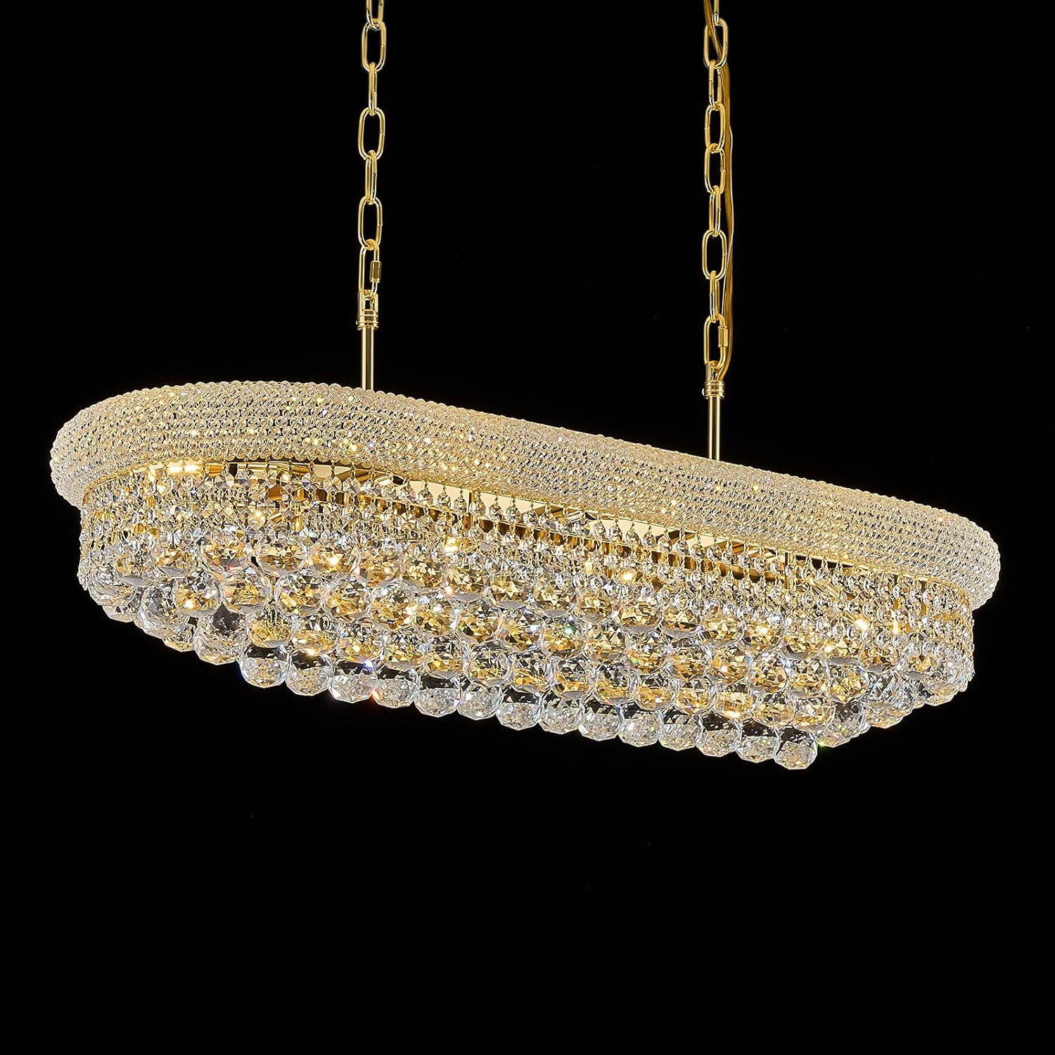 Rectangular Crystal Chandeliers for Dining Room,10 Lights Adjustable Height Oval Crystal Ceiling Light Fixture for Kitchen Island, Gold Finish, L36''