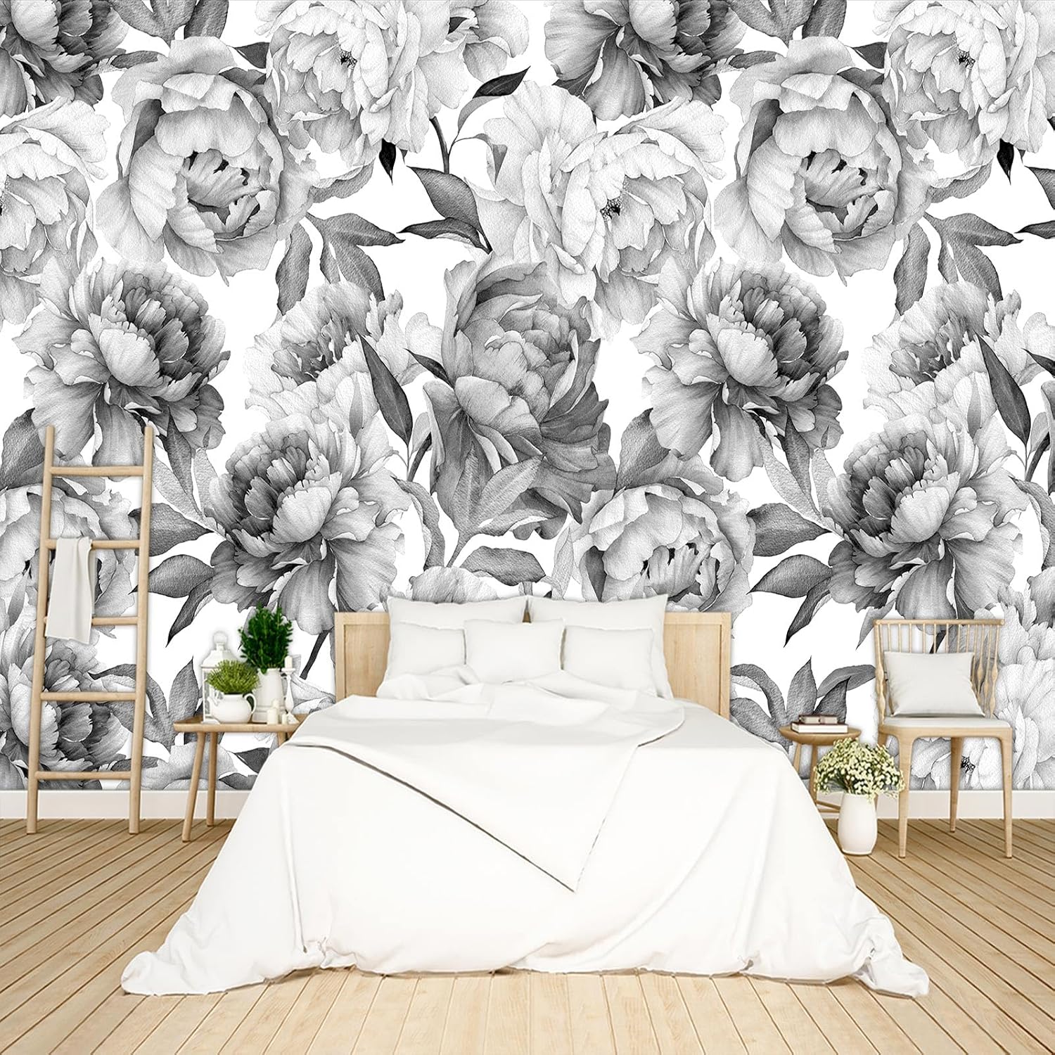 Grey Peony Floral Wallpaper Peel and Stick Wall Mural for Bedroom Living Room - 96"x137"