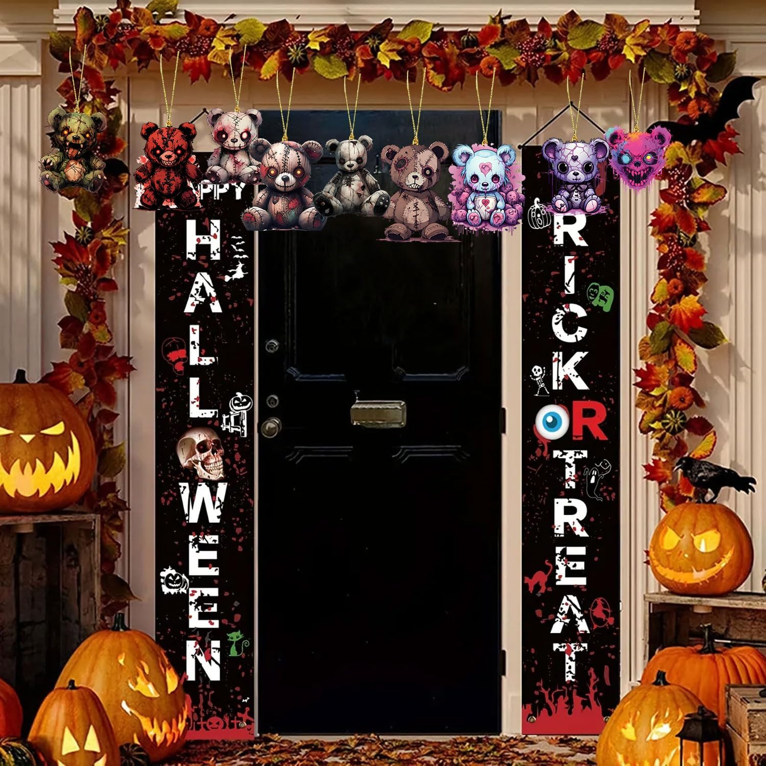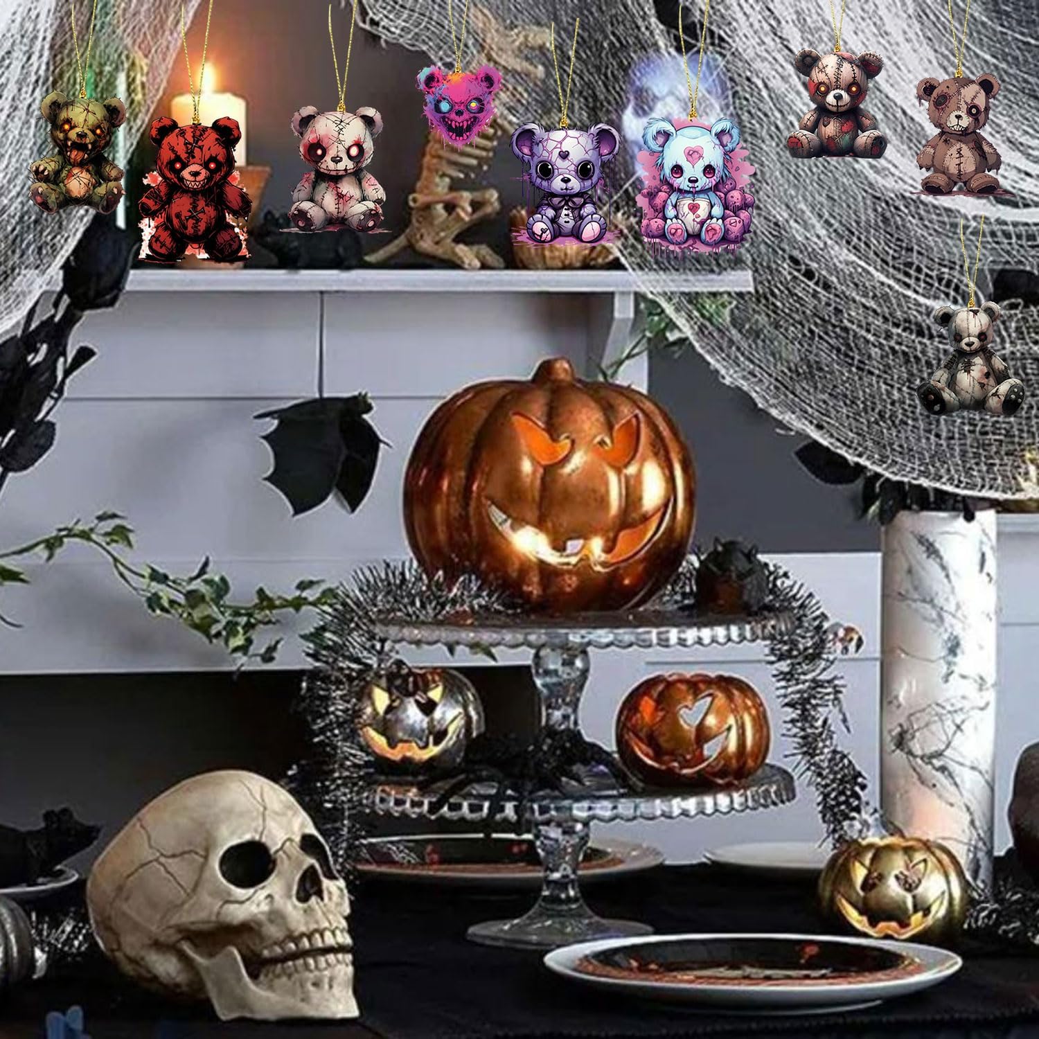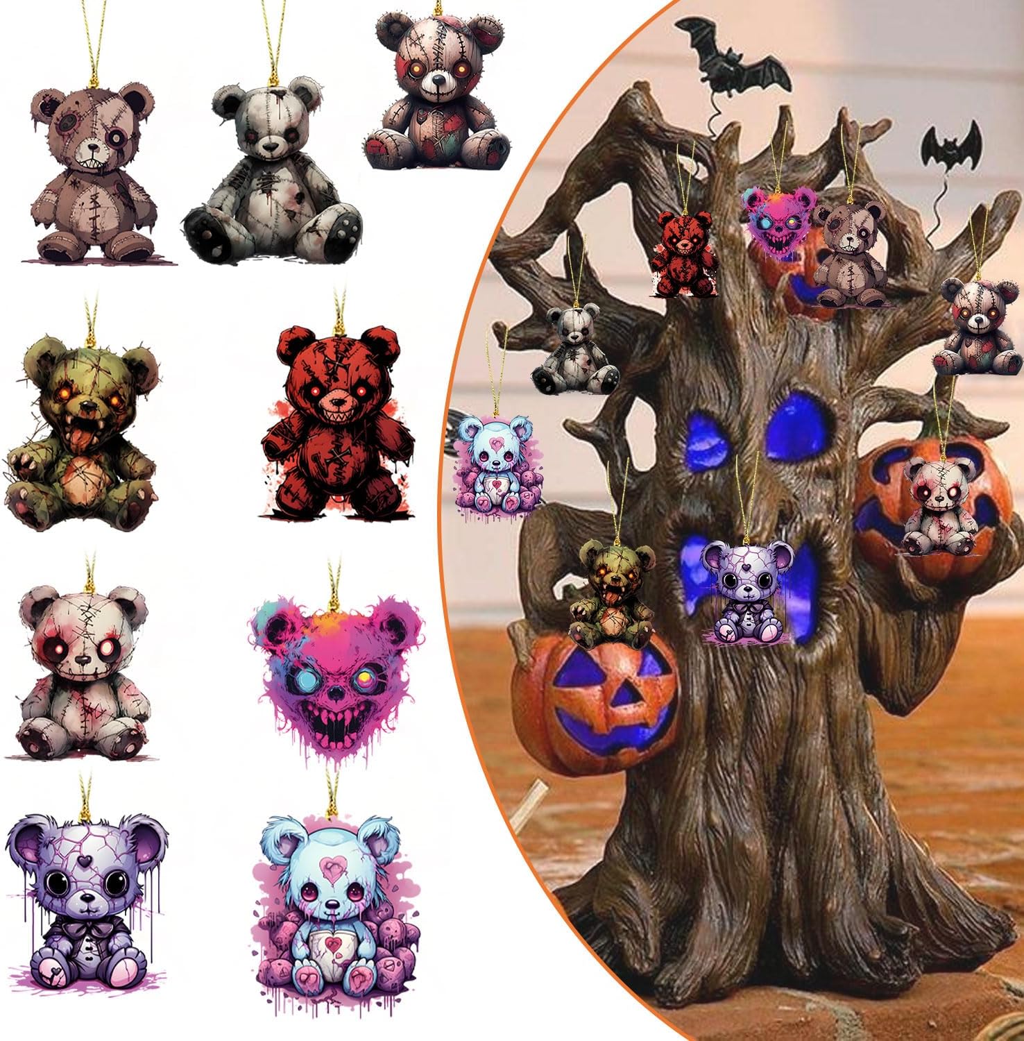 Halloween Tree Hanging Ornaments, 9 Pcs Cute Acrylic Pendant, Terror Bear Halloween Accessories, Funny Cartoon Christmas Tree Decoration for Mini Characters Decorations Indoor Outdoo