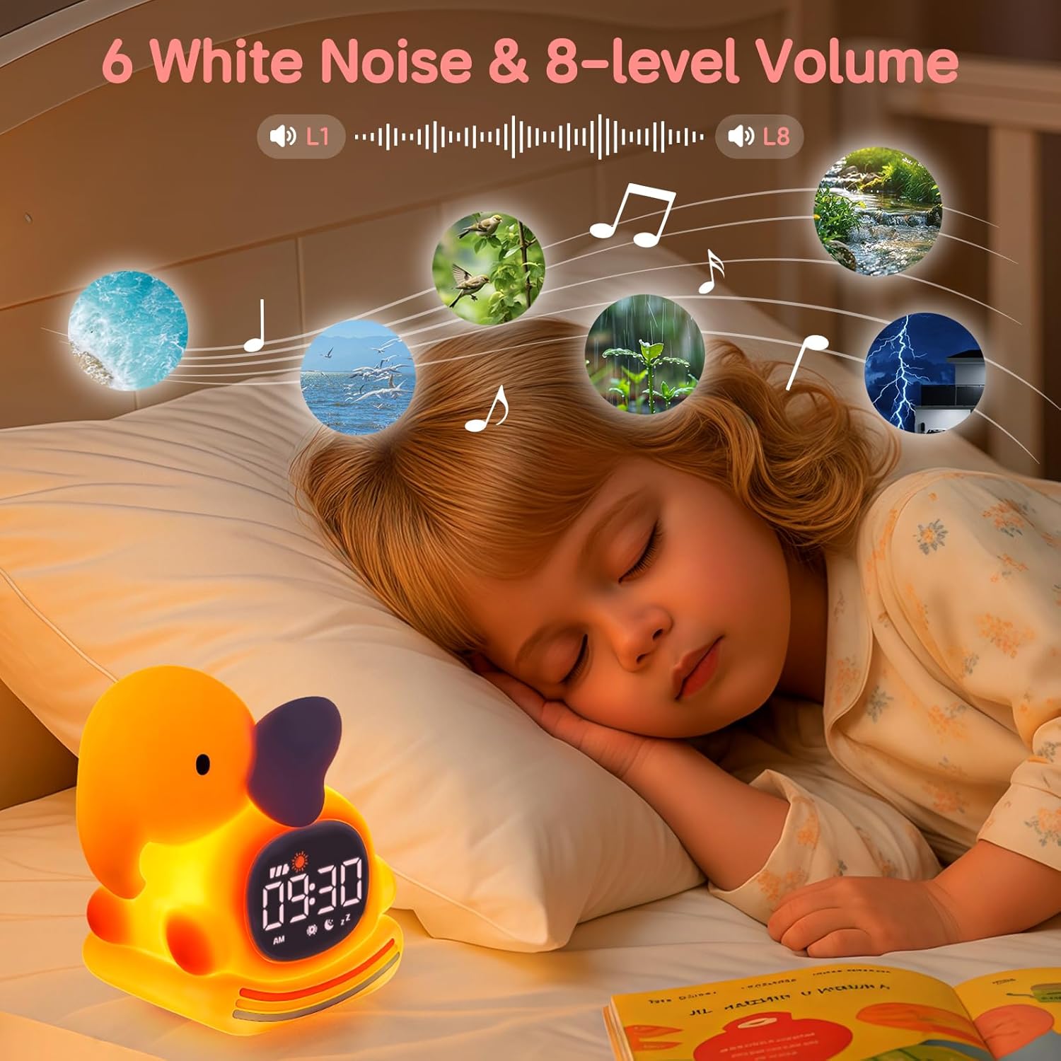 - Gentle Sleep Training: Help kids build healthy sleep routines with smart light cues: red light and white noise for bedtime, soft yellow sunrise light 30 minutes before wake-up, and a green "go" light when it’s time to start the day.