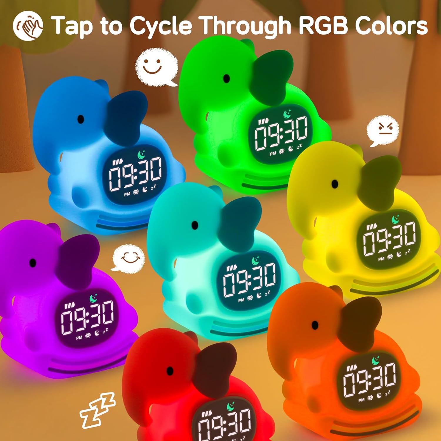 Alarm Clock for Kids with Night Light, Sleep Training Clock Time to Wake Clock, Rechargeable Silicone Light for Bedroom, Perfect Sleep Companion for Boys Girls, Pink Elephant