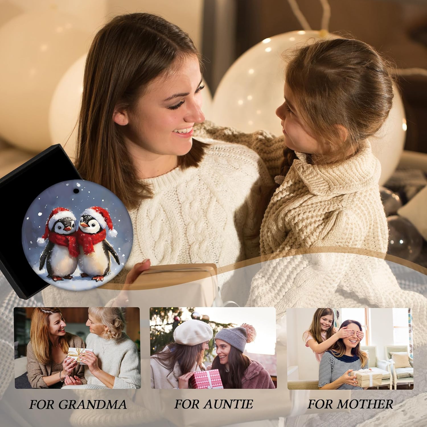 Penguin Christmas Ceramic Ornament Gifts, Winter Christmas Penguins Decorative Hanging Ornaments for Xmas Tree Holiday Party Decoration, Winter Penguin Xmas Tree Decorations