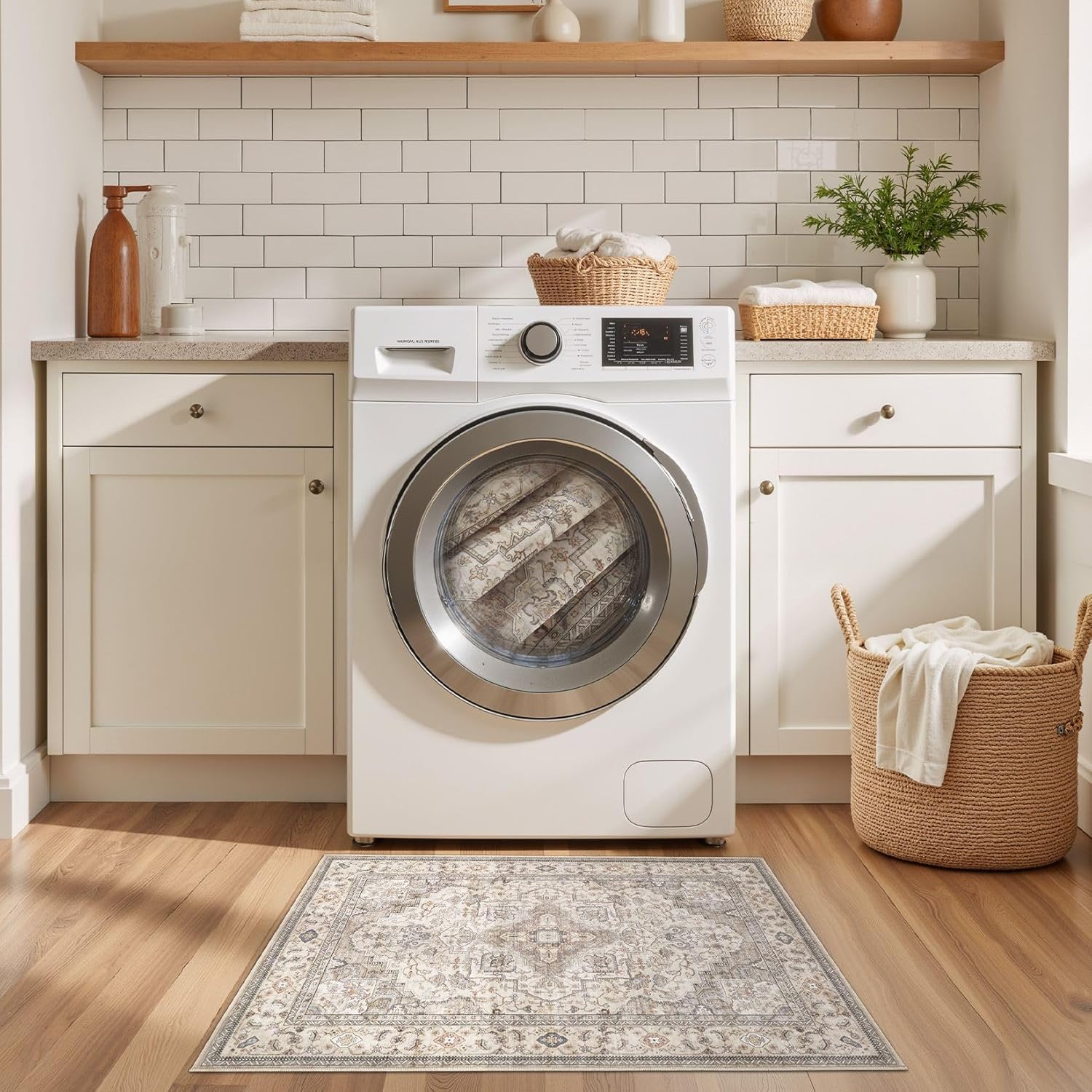 - Non-Slip Backing: The bottom of the washable rug has a soft TPE rubber backing. It has very good adhesion to the ground and is not easy to slip, reducing the risk of tripping. You can also choose to receive our complimentary rug stickers