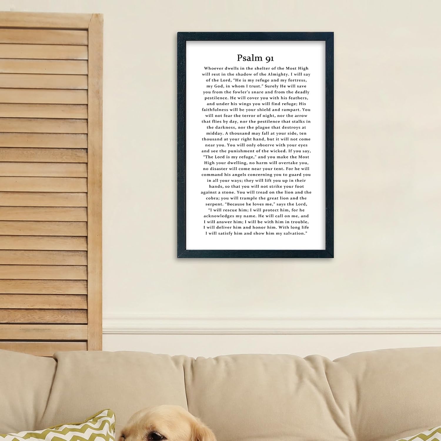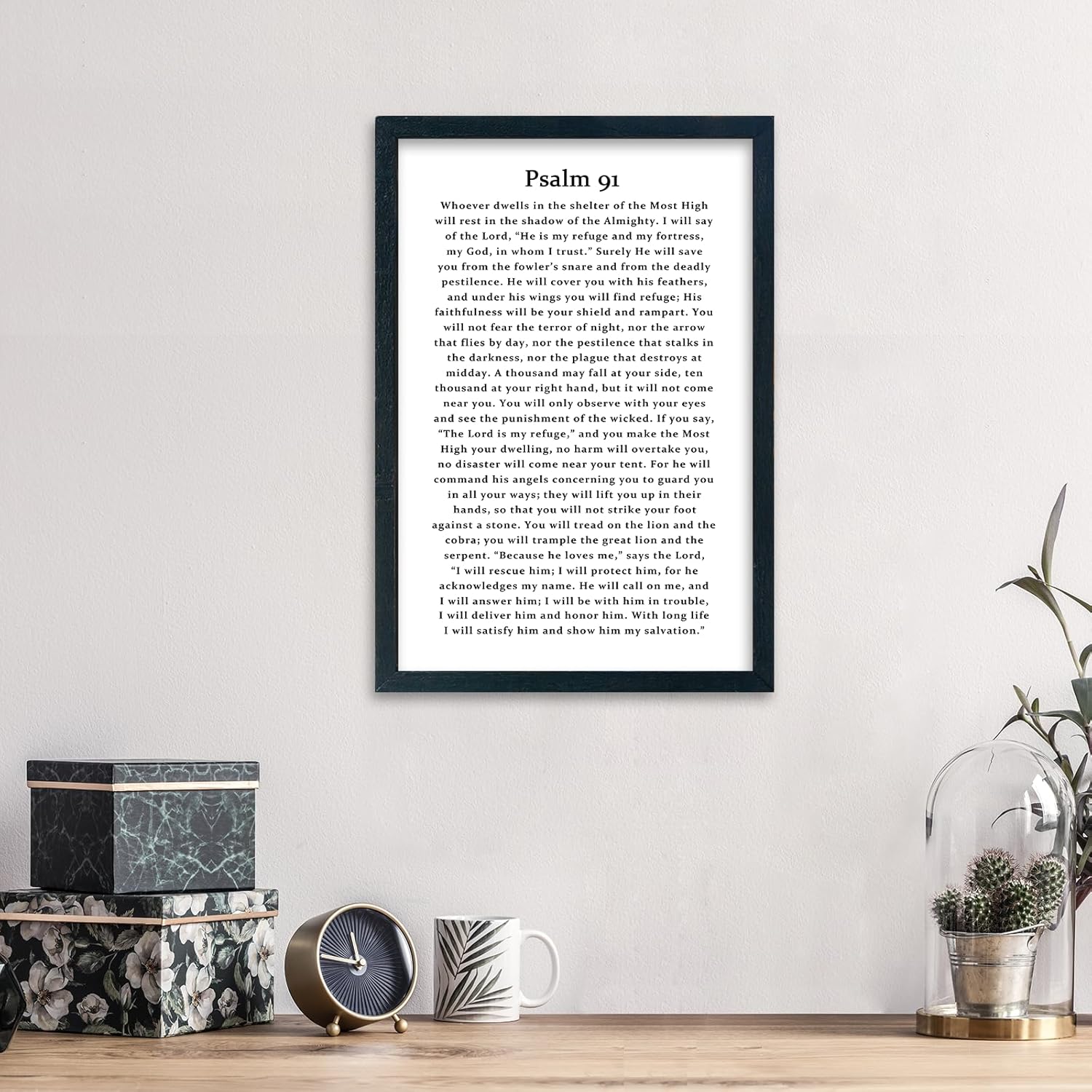 LuZhiQiang Psalm 91 Scripture Wall Art 16"×11" Bible Verse Christian Inspirational Sign Wood Framed Wall Hanging Decor (Black)