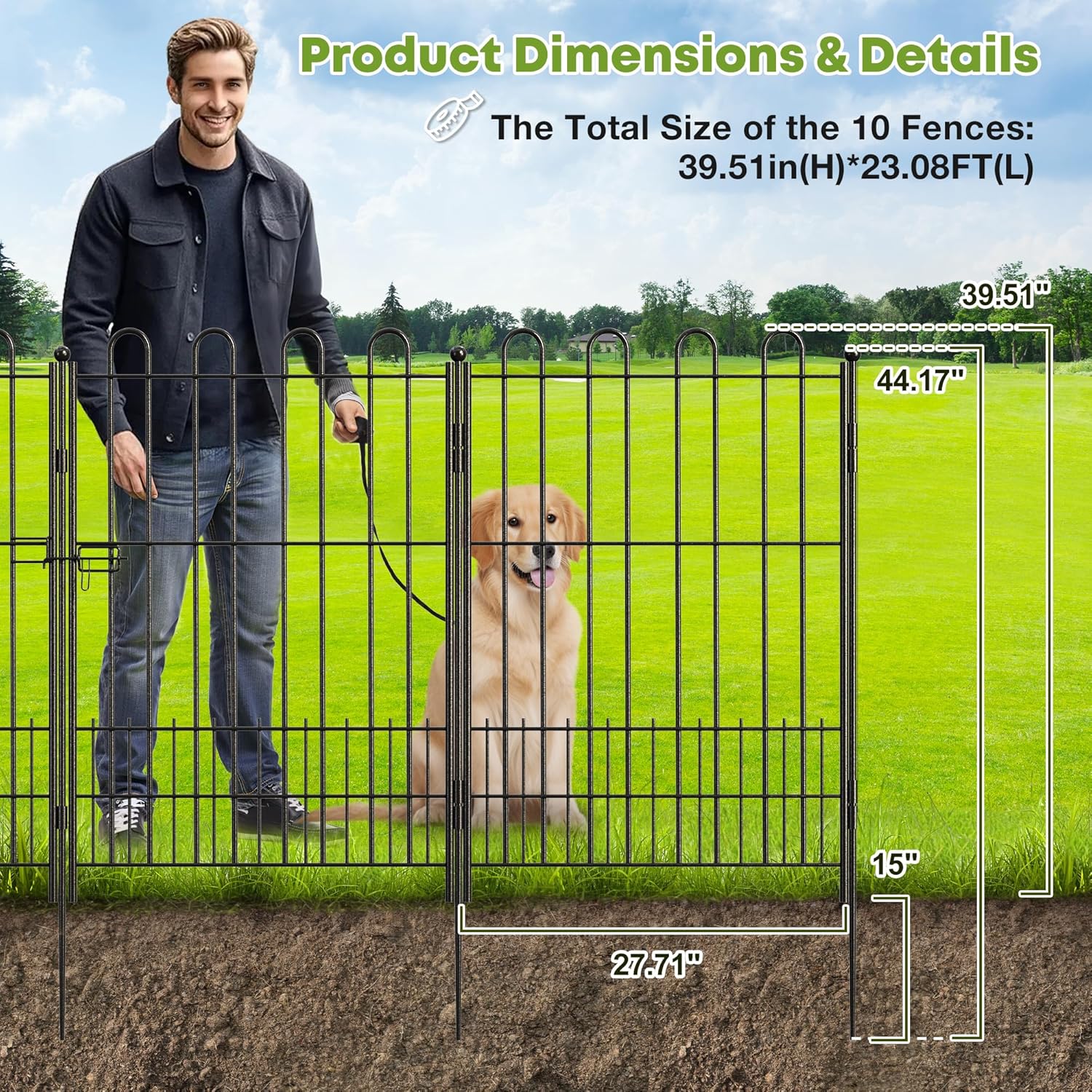 10 Panels Decorative Garden Fence with U-Shape and Latch Gate, 39.51 in(H) X 23.08 ft(L) Dog Fence Outdoor for Yard Security, Garden Fencing Includes Deep Stakes