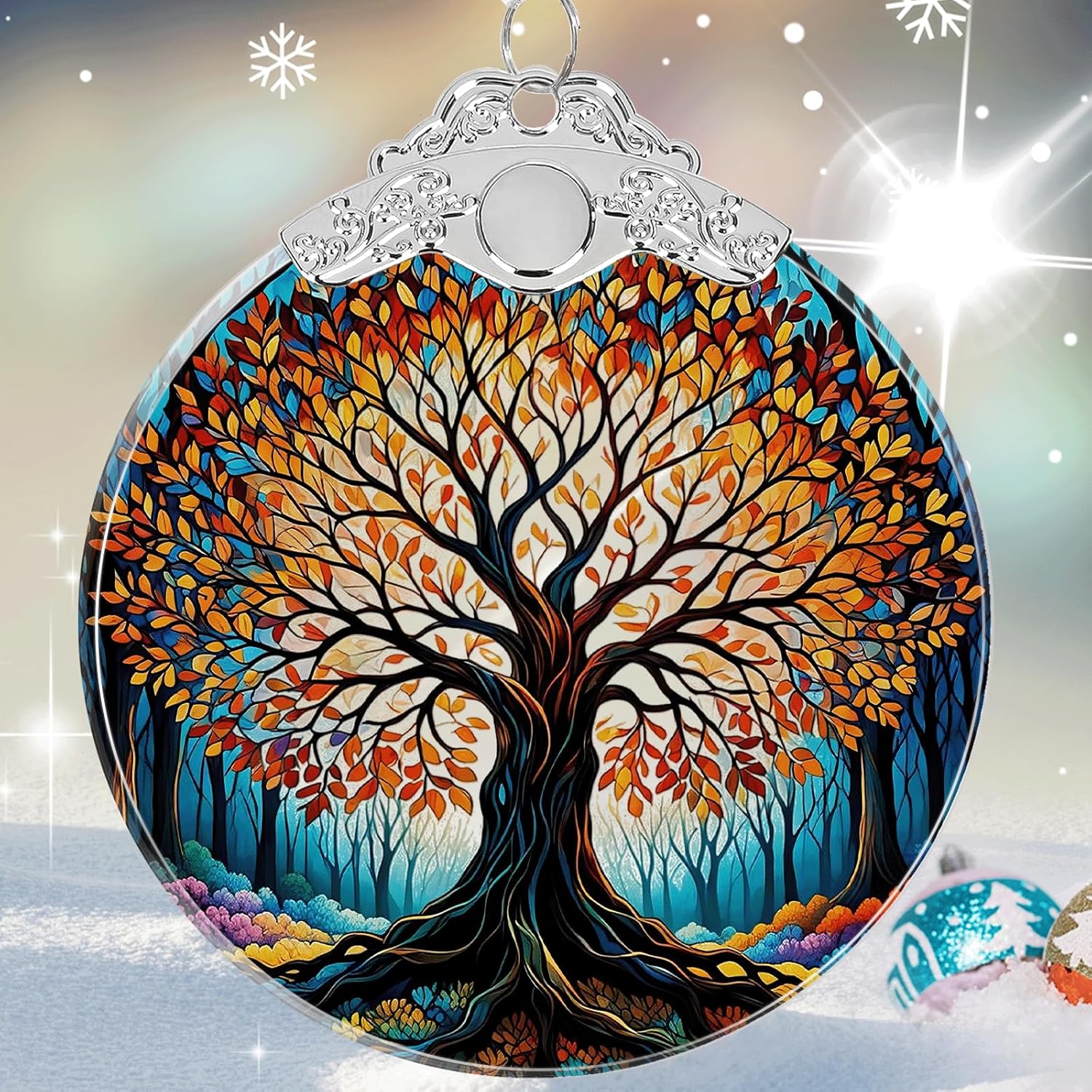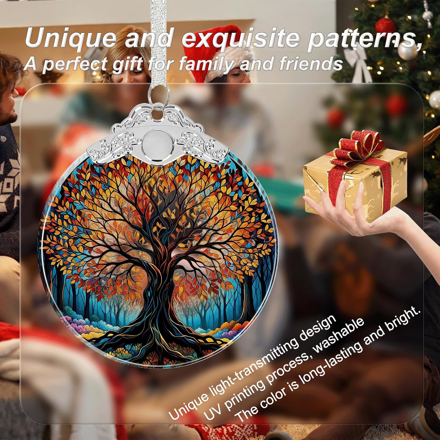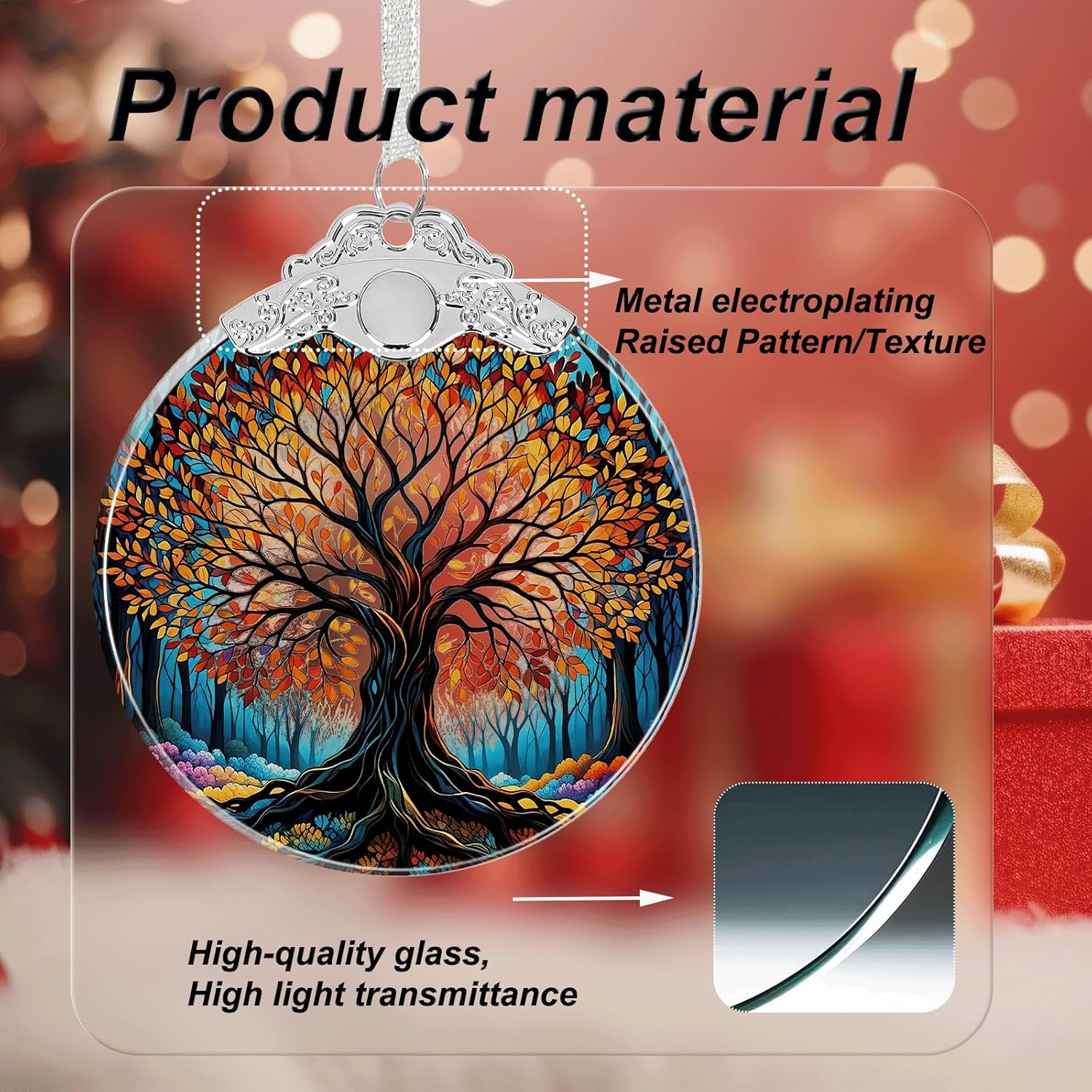 Tree of Life Stained Glass Christmas Ornament - Hanging Ornaments for Christmas Tree Decorations -Holiday Keepsake Present Exchange Idea -2