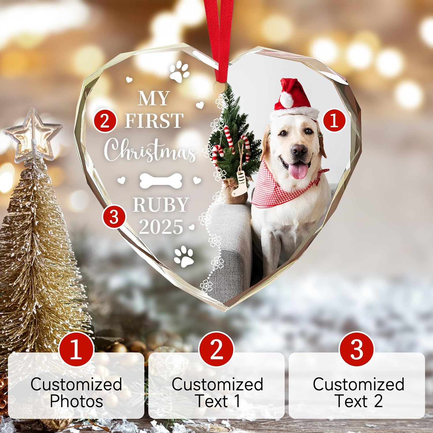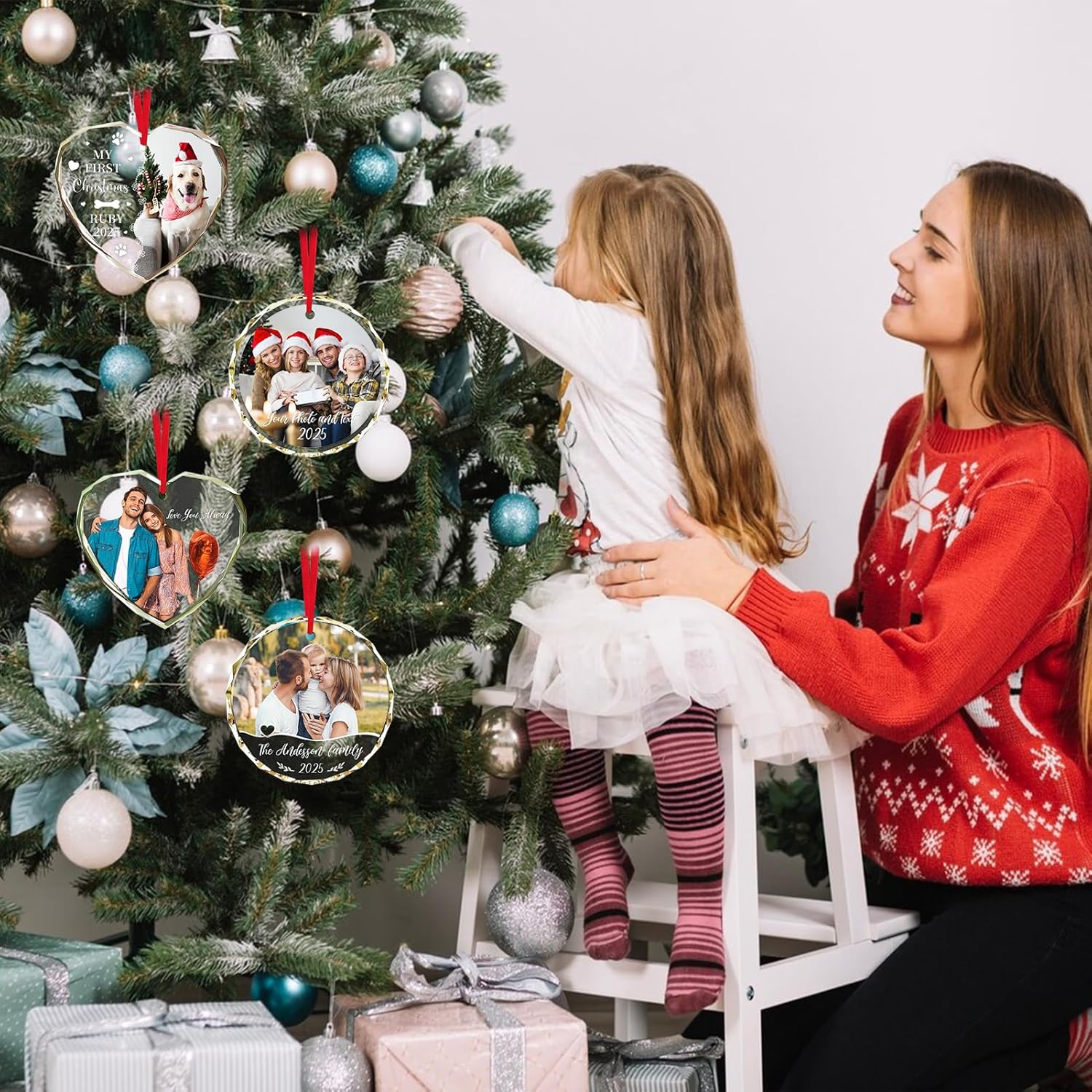 Personalized Christmas Ornaments 2025 with Photo & Text - Customized Crystal Glass Christmas Tree Decor Gifts for Family, Couples, Pets, Baby’s First Xmas – 6 Heart/Round Designs
