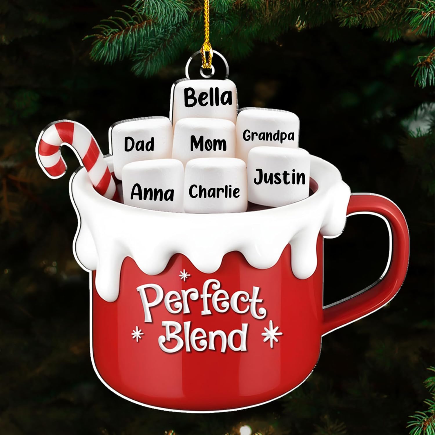 A Blend of Christmas Cheer Personalized Acrylic Ornament β Custom Name Charms Family Members up to 10 People, Holiday Decoration for Family Members & Friends