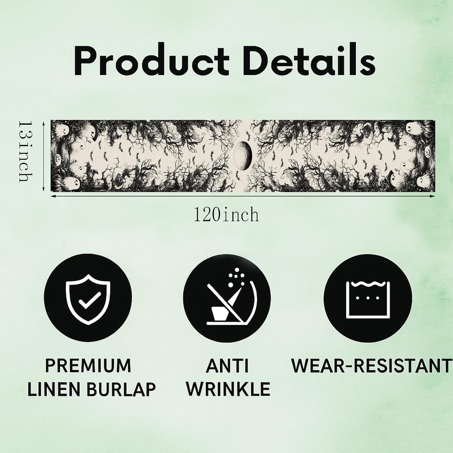 GPGHE Halloween Table Runner Black Ghost Holiday Burlap Table Decoration Indoor Outdoor Home Decor Party Supply 13 x 120 Inch